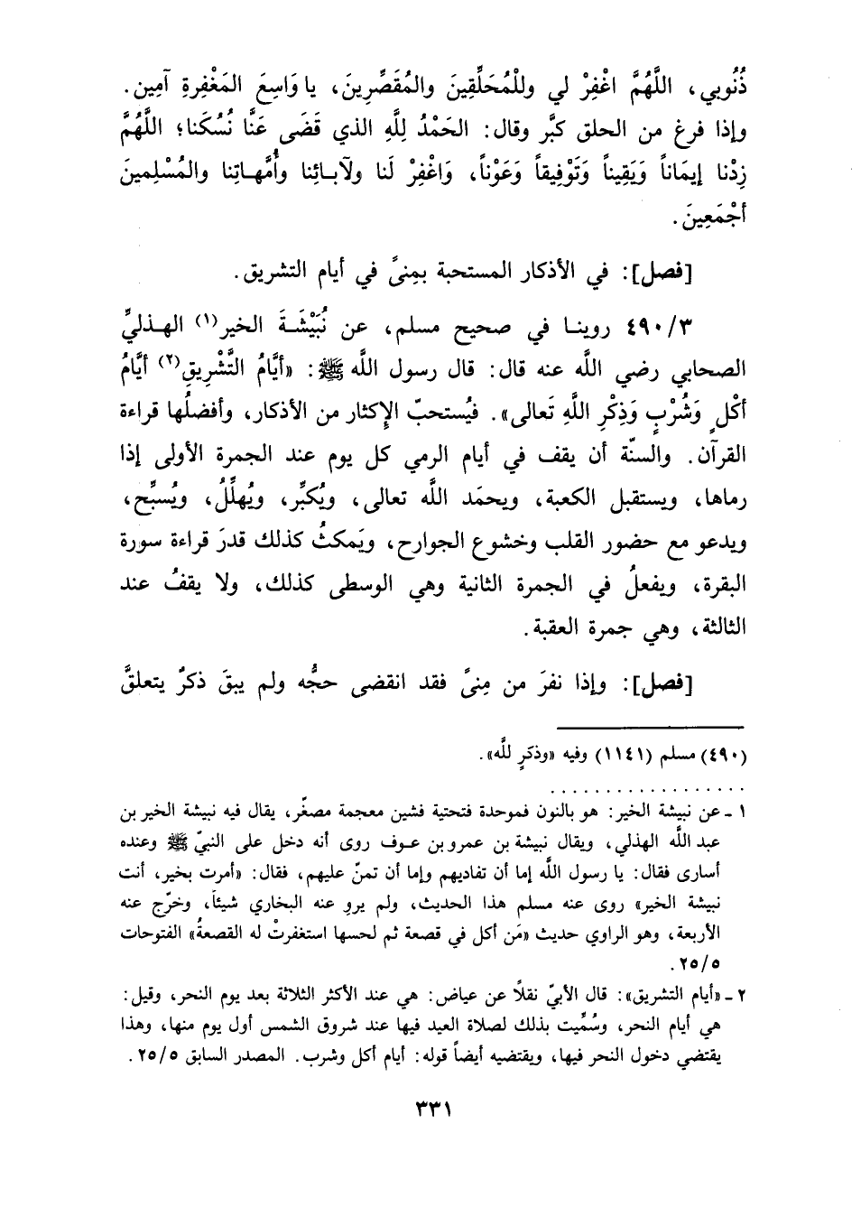 [3/ 490] روينا في صحيح مسلم، عن نُبَيْشَةَ الخير (¬1) الهذليِّ الصحابي رضي الله عنه قال: