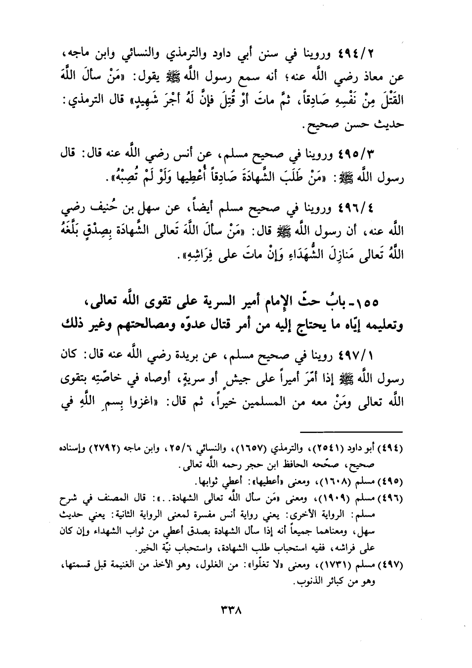 155 ـ باب حثّ الإِمام أمير السرية على تقوى الله تعالى، وتعليمه إيّاه ما يحتاج إليه من أمر قتال عدوّه ومصالحتهم وغير ذلك