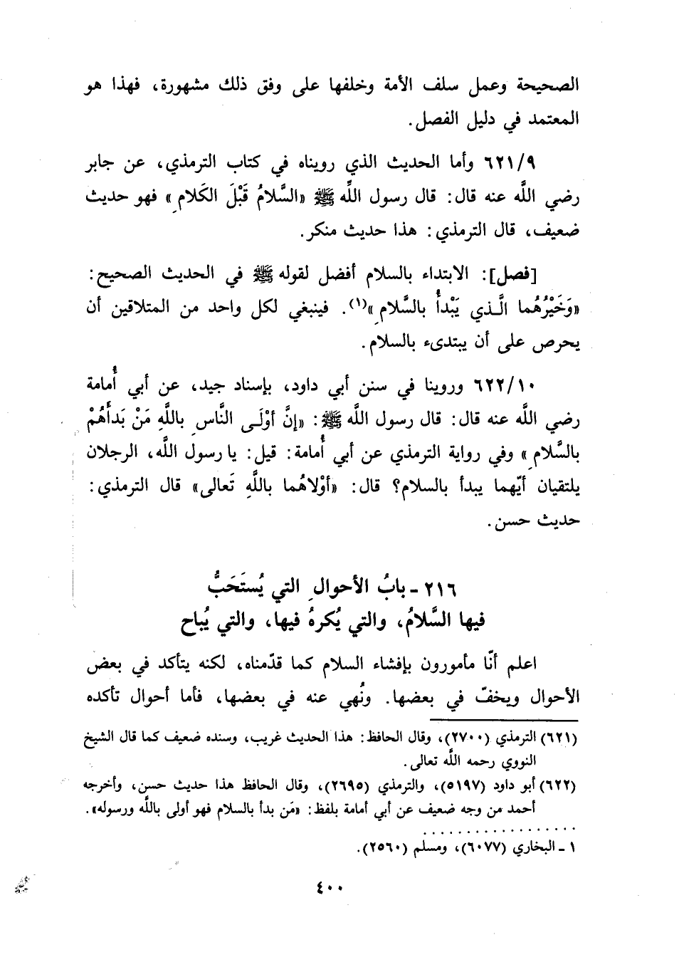 216 ـ بابُ الأحوالِ التي يُستَحَبُّ فيها السَّلامُ، والتي يُكرهُ فيها، والتي يُباح