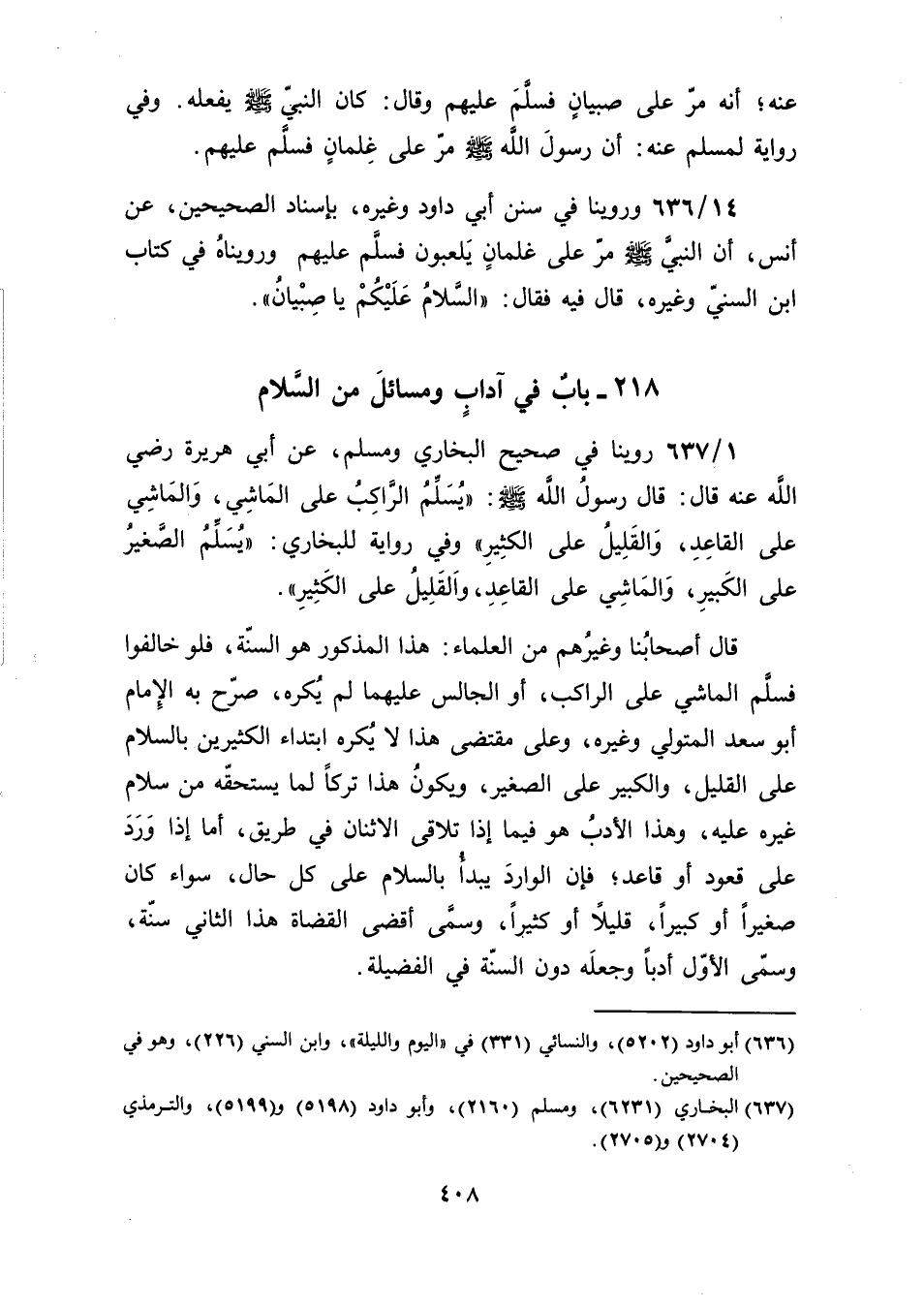 218 ـ بابٌ في آدابٍ ومسائلَ من السَّلام
