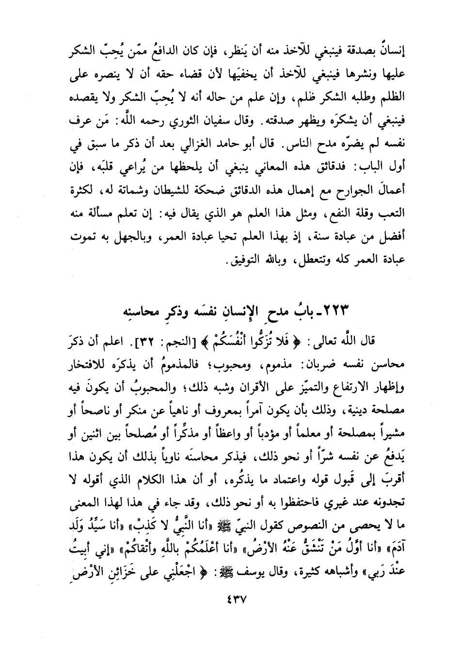 223 ـ بابُ مدح الإِنسان نفسه وذكر محاسنه
