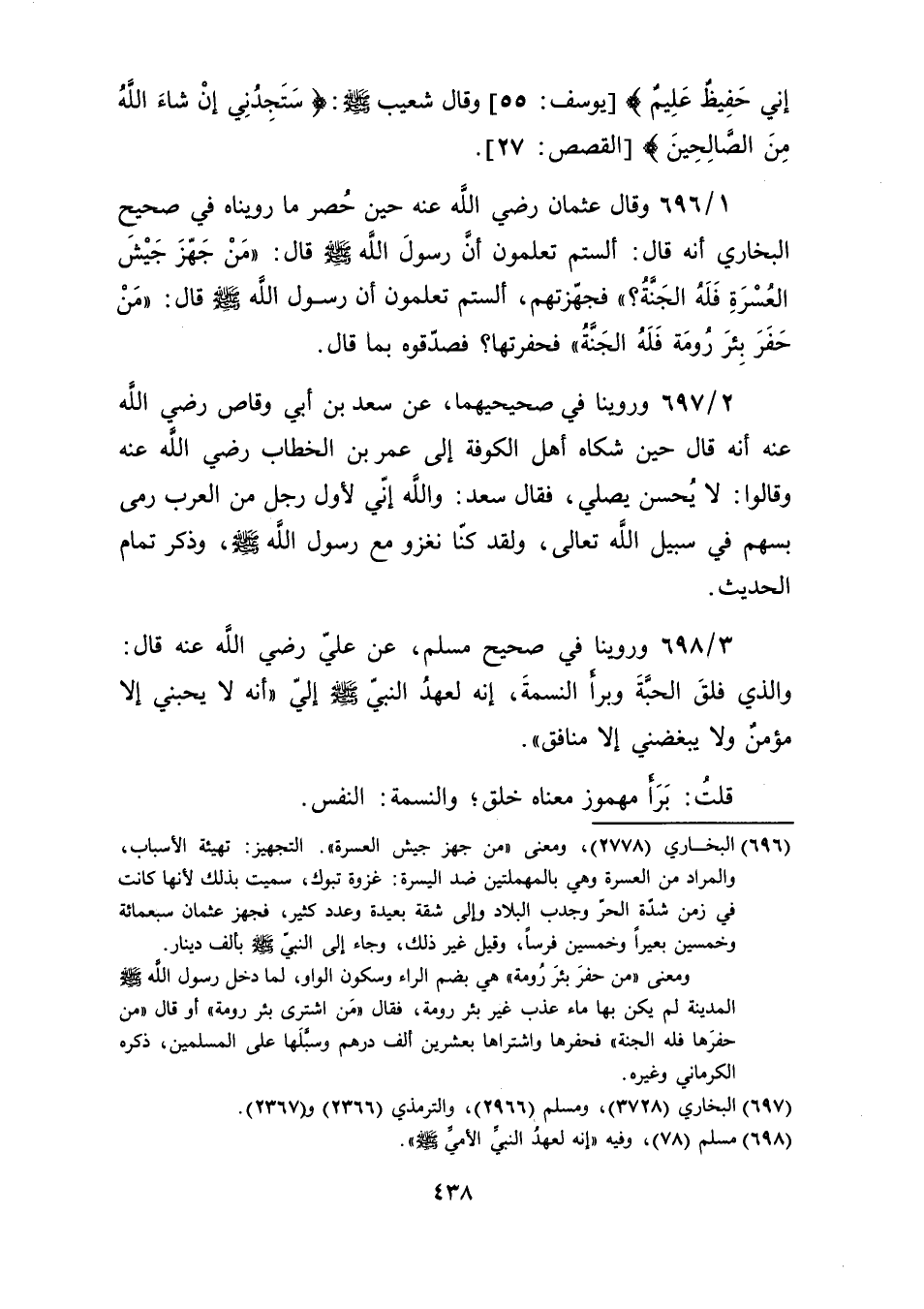 [1/ 696] وقال عثمان رضي الله عنه حين حُصر ما رويناه في صحيح البخاري أنه قال: