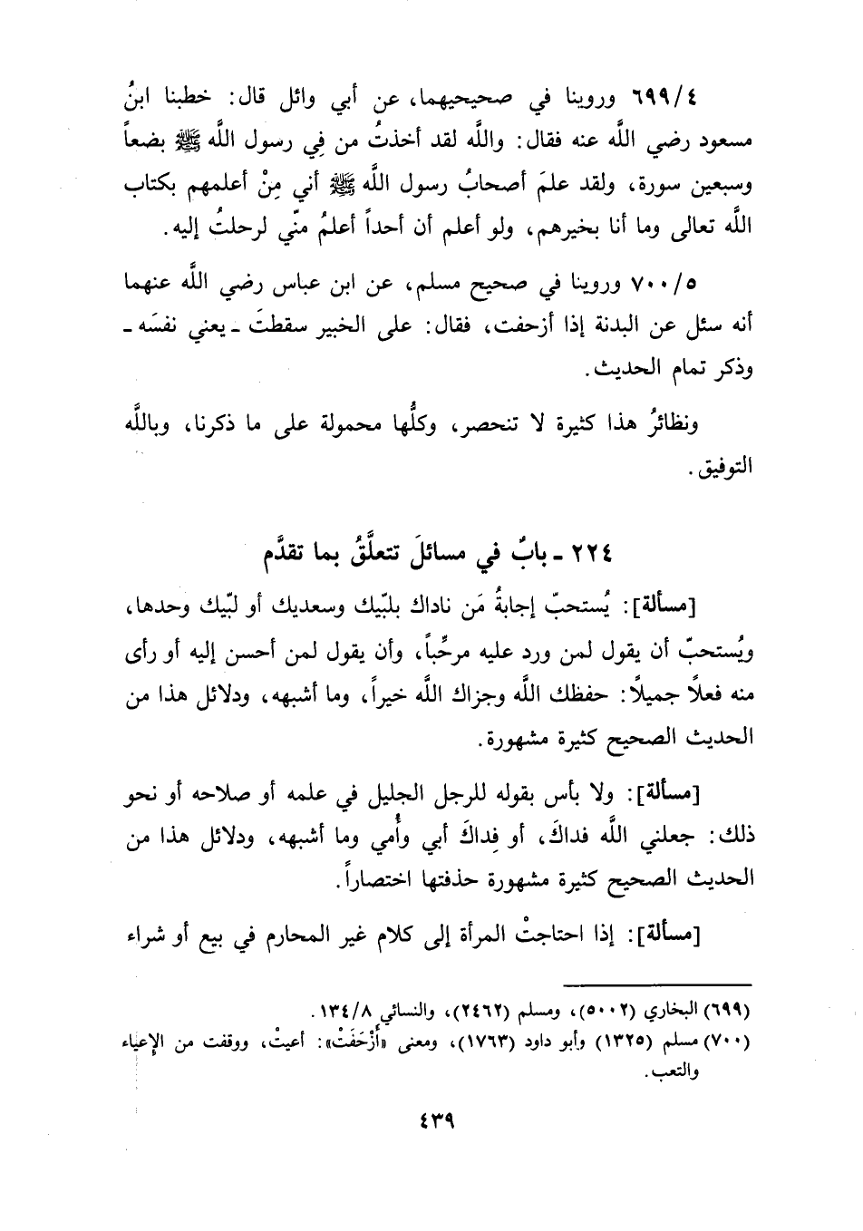 224 ـ بابٌ في مسائل تتعلَّق بما تقدَّم