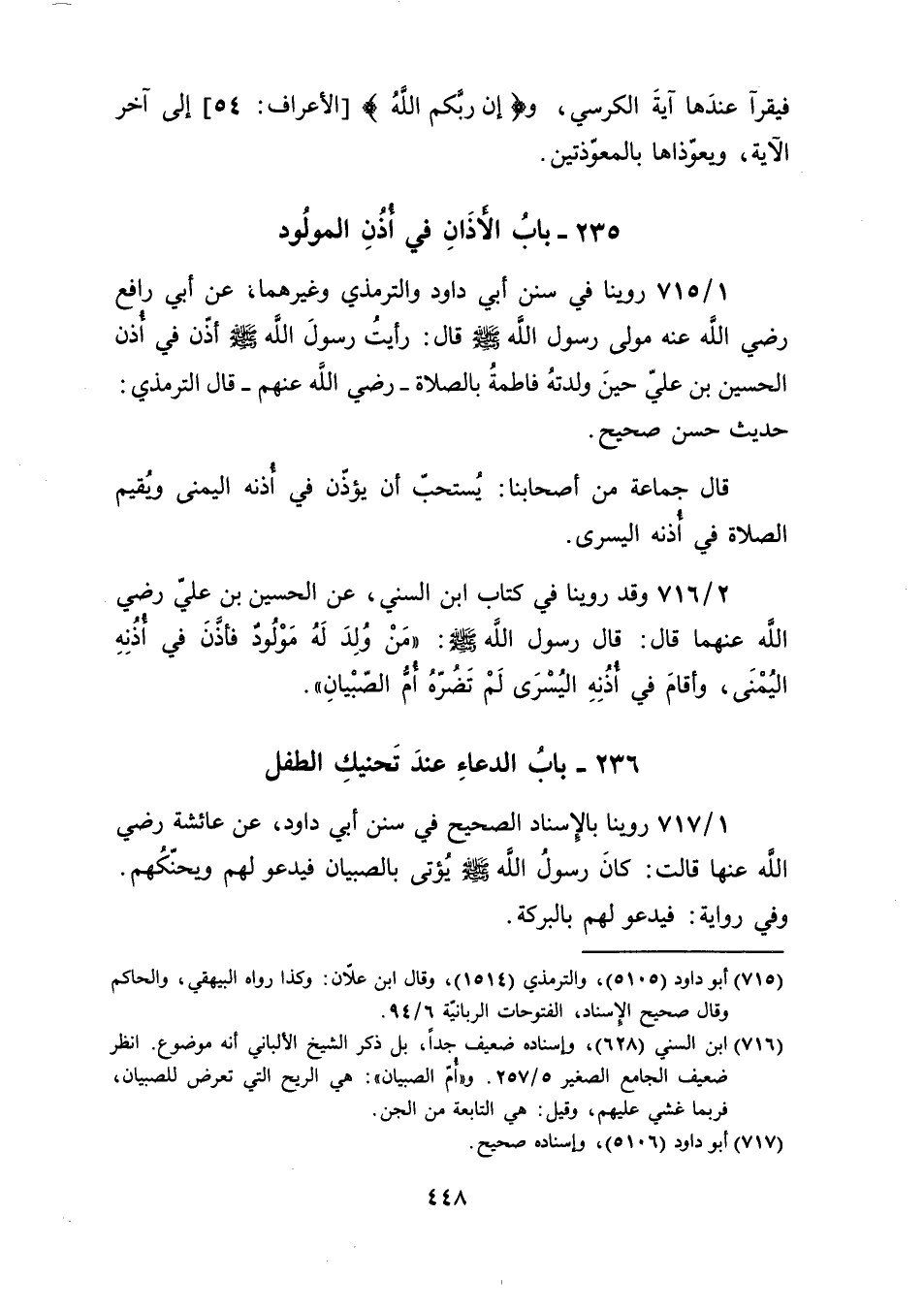 236 ـ بابُ الدعاءِ عندَ تَحنيكِ الطفل