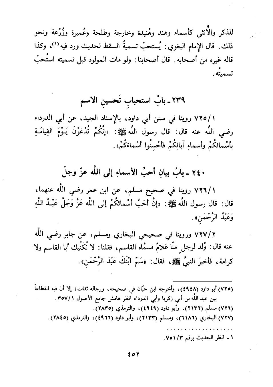 240 ـ بابُ بيانِ أحبِّ الأسماءِ إلى الله عزَّ وجلّ