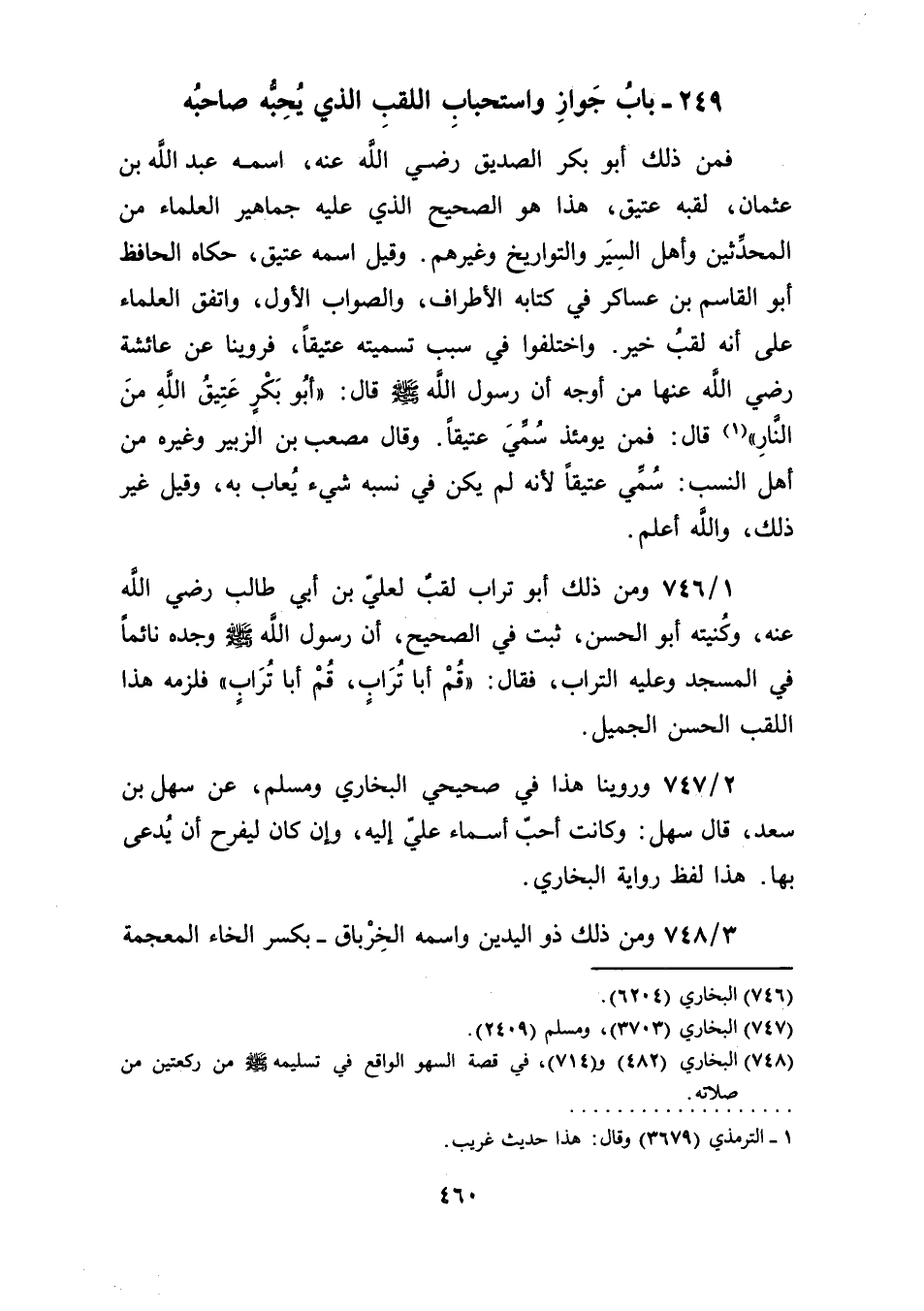 249 ـ بابُ جَوازِ واستحباب اللقبِ الذي يُحبُّه صاحبُه
