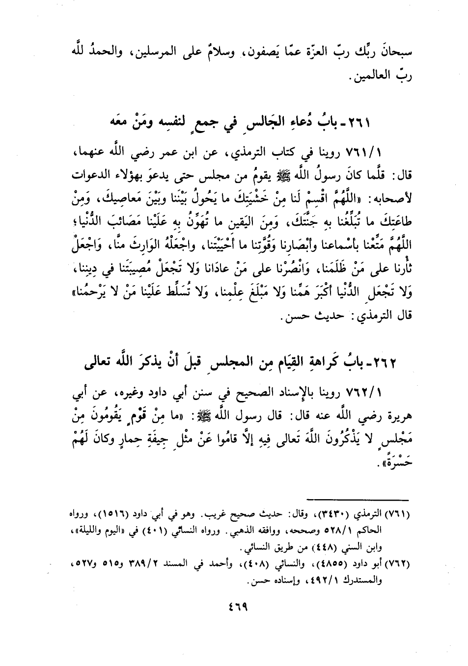 262 ـ بابُ كَراهةِ القِيَام مِن المجلسِ قبلَ أنْ يذكرَ الله تعالى