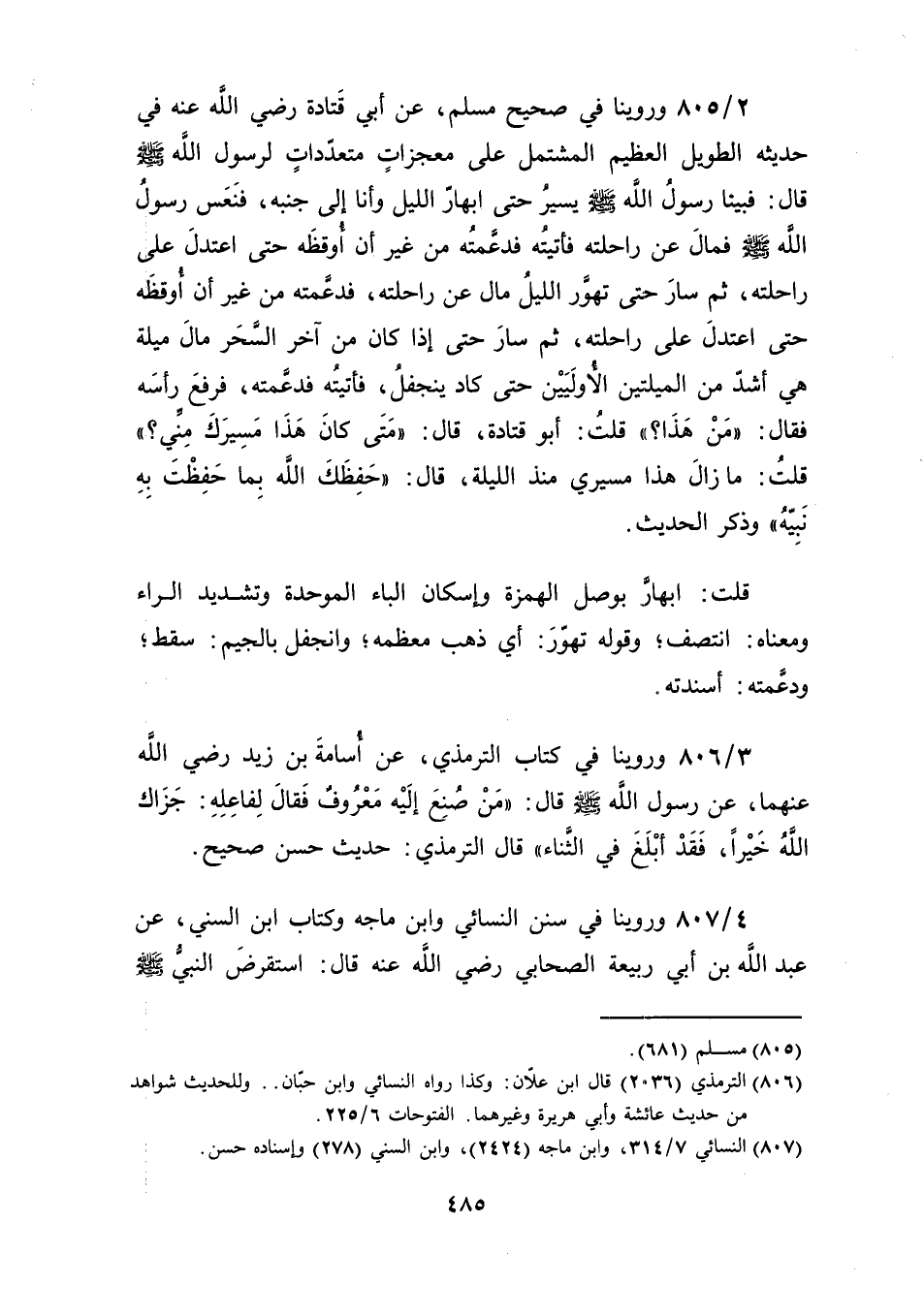 [2/ 805] وروينا في صحيح مسلم، عن أبي قتادة رضي الله عنه في حديثه الطويل العظيم المشتمل على معجزاتٍ متعدّداتٍ لرسول الله صلى الله عليه وسلم قال: