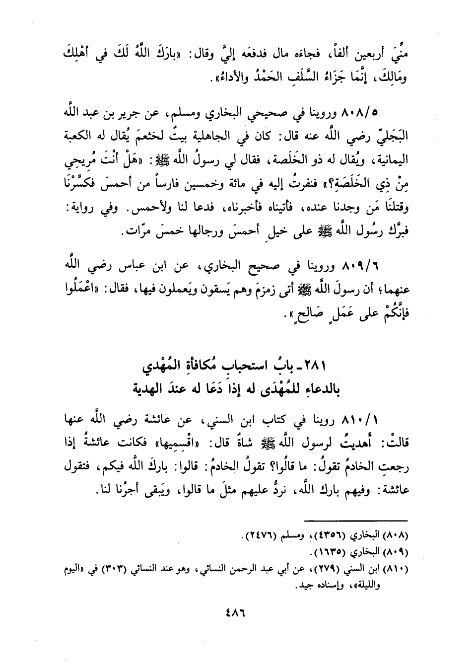 281 ـ بابُ استحبابِ مُكافأةِ المُهْدي بالدعاءِ للمُهْدَى له إذا دَعا له عندَ الهدية