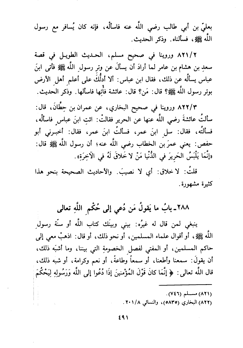 288 ـ بابُ ما يَقولُ مَن دُعي إلى حُكْمِ اللَّهِ تعالى