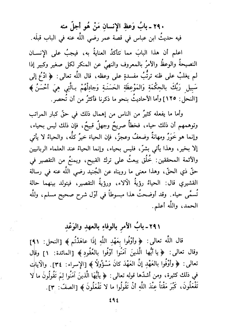 291 ـ بابُ الأمر بالوفاءِ بالعهدِ والوَعْدِ