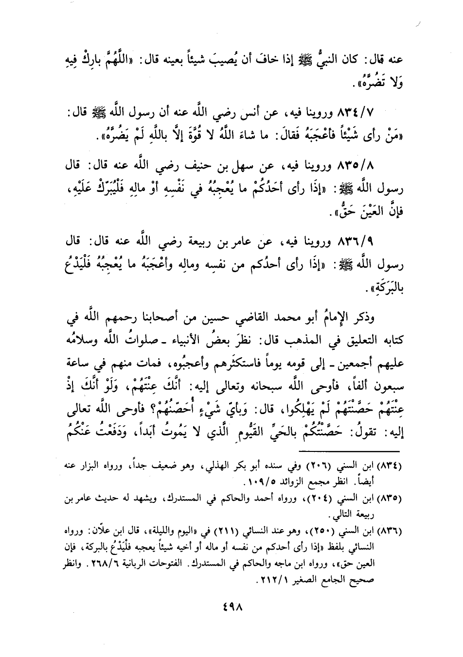 [835] ابن السني (204)، ورواه أحمد والحاكم في المستدرك، ويشهد له حديث عامر بن ربيعة التالي.