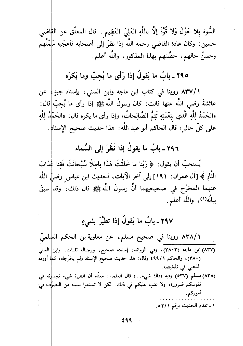 295 ـ بابُ ما يقول إذا رأى ما يُحِبّ وما يَكره