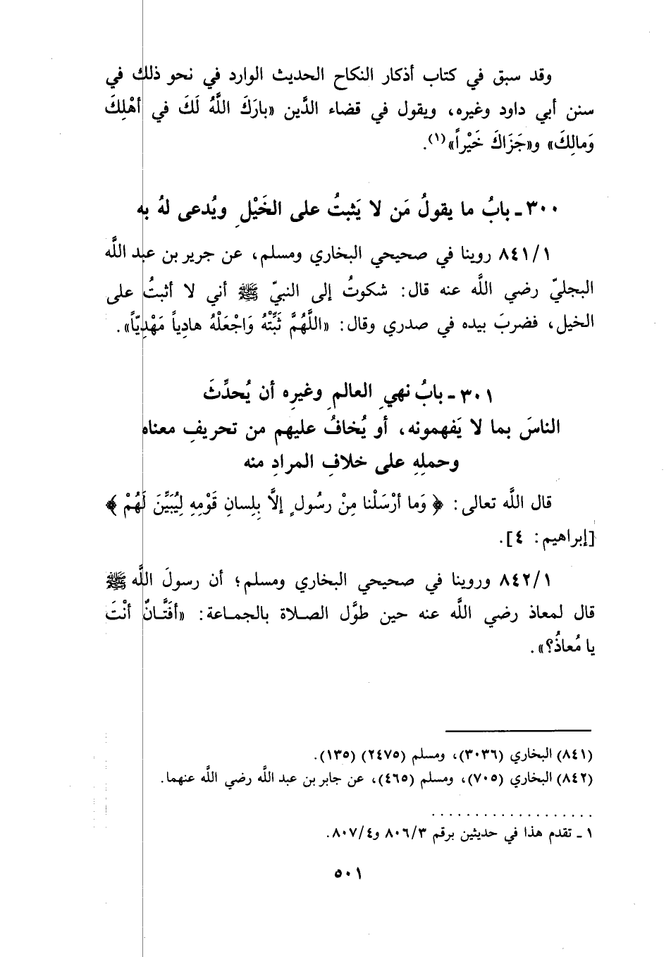 301 ـ بابُ نهيِ العالم وغيرِه أن يُحدِّثَ الناسَ بما لا يَفهمونه، أو يُخافُ عليهم من تحريف معناه وحملِهِ على خلاف المراد منه