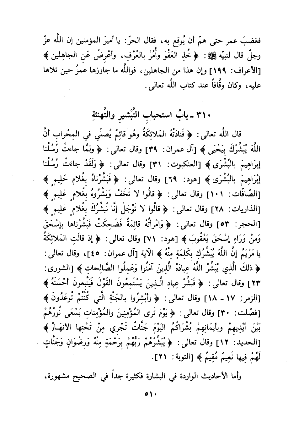310 ـ بابُ استحباب التَّبْشيرِ والتَّهنئةِ