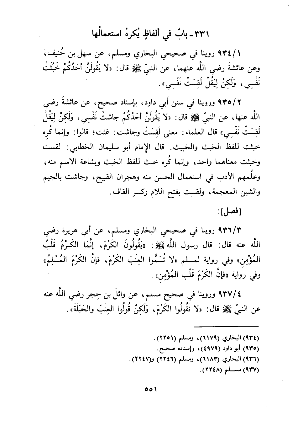 331 ـ بابٌ في ألفاظٍ يُكرهُ استعمالُها
