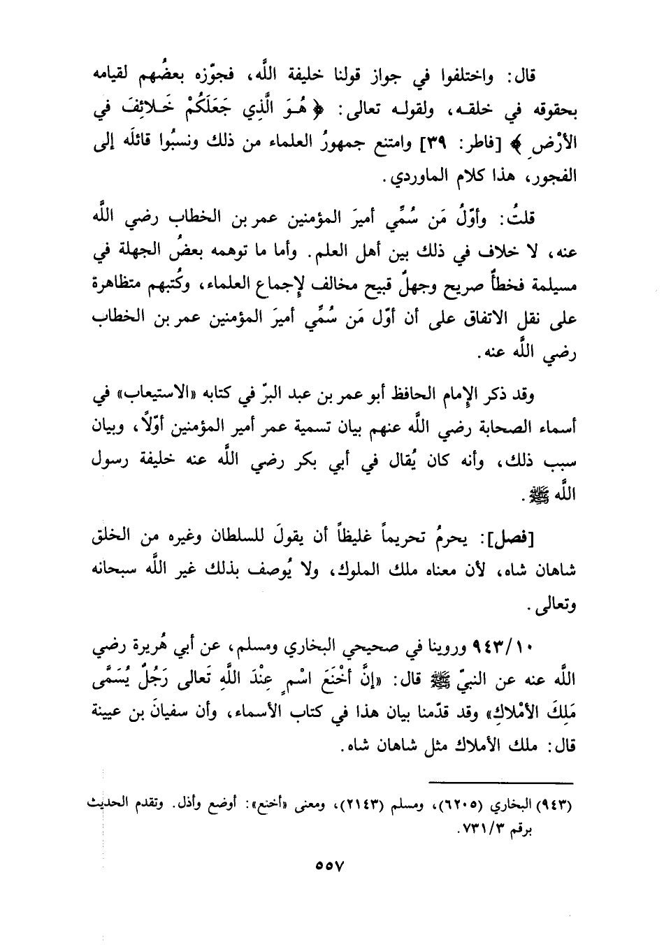 عن النبيّ قال: "إنَّ أخْنَعَ اسْمٍ عِنْدَ اللَّهِ تَعالى رَجُلٌ يُسَمَّى مَلِكَ الأمْلاكِ" وقد قدّمنا بيان هذا في كتاب الأسماء، وأن سفيانَ بن عيينة قال: ملك الأملاك مثل شاهان شاه.