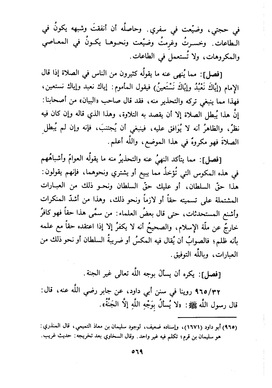 [فصل]: مما يتأكد النهيُ عنه والتحذيرُ منه ما يقولُه العوامّ وأشباهُهم في هذه المكوس التي تُؤخذُ مما يبيع أو يشتري ونحوهما، فإنهم يقولون: هذا حقّ السلطان، أو عليك حقّ السلطان ونحو ذلك من العبارات المشتملة على تسميته حقًا أو لازمًا ونحو ذلك، وهذا من أشدّ المنكرات وأشنع المستحدثات، حتى قال بعضُ العلماء: من سمَّى هذا حقًا فهو كافرٌ خارجٌ عن ملّة الإِسلام، والصحيحُ أنه لا يكفرُ إلا إذا اعتقده حقًا مع علمه بأنه ظلم؛ فالصوابُ أن يُقال فيه المكسُ أو ضريبةُ السلطان أو نحو ذلك من العبارات، وبالله التوفيق.