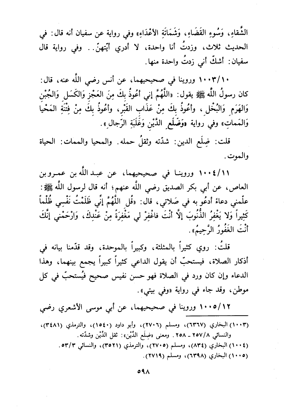 [1003] البخاري (6367)، ومسلم (2706)، وأبو داود (1540)، والترمذي (3481)، والنسائي 8/ 257ـ258. ومعنى "ضَلَع الدَّيْن": ثقل الدَّيْن وشدّته.
