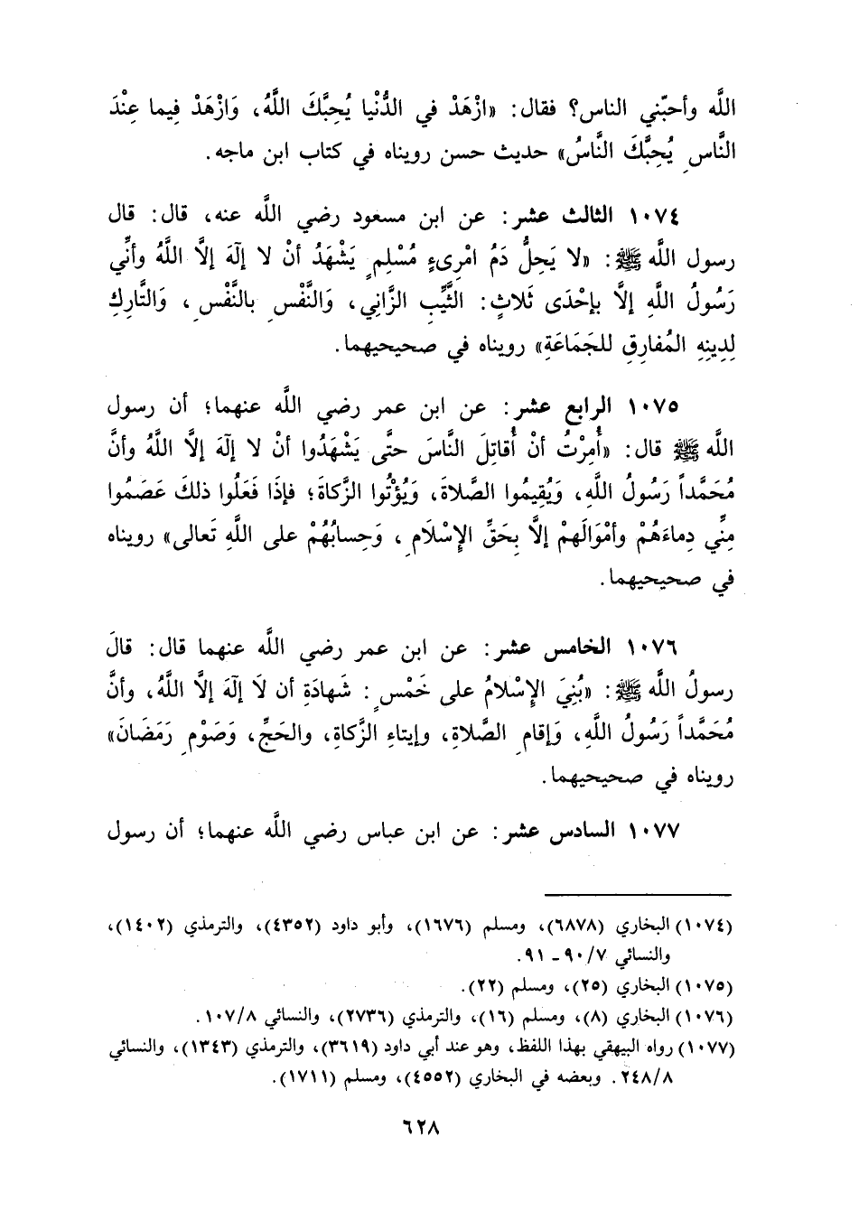 [1076] البخاري (8)، ومسلم (16)، والترمذي (2736)، والنسائي 8/ 107.