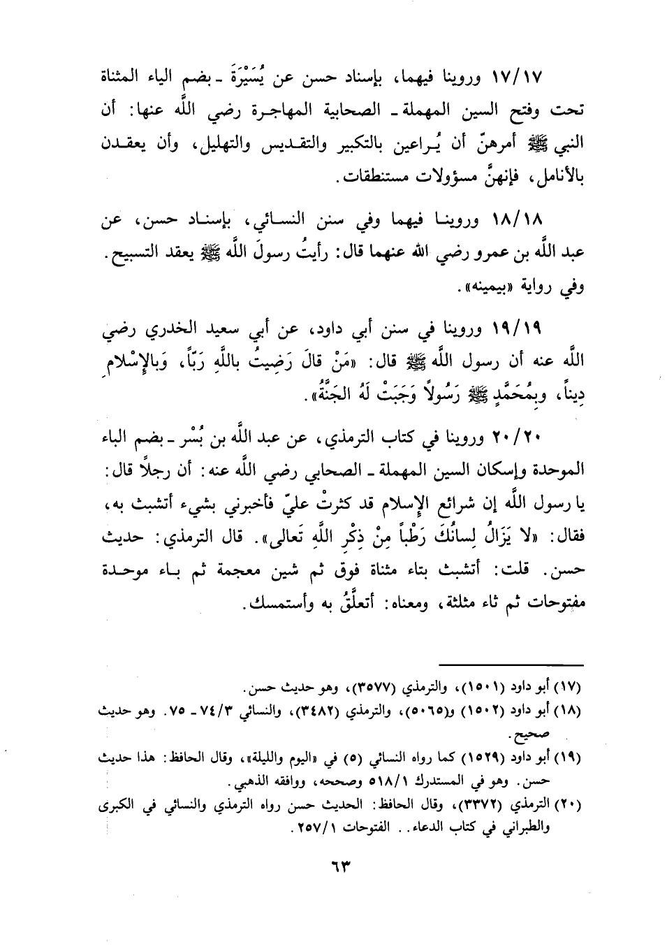 [20] الترمذي (3372)، وقال الحافظ: الحديث حسن رواه الترمذي والنسائي في الكبرى والطبراني في كتاب الدعاء. الفتوحات 1/ 257.
