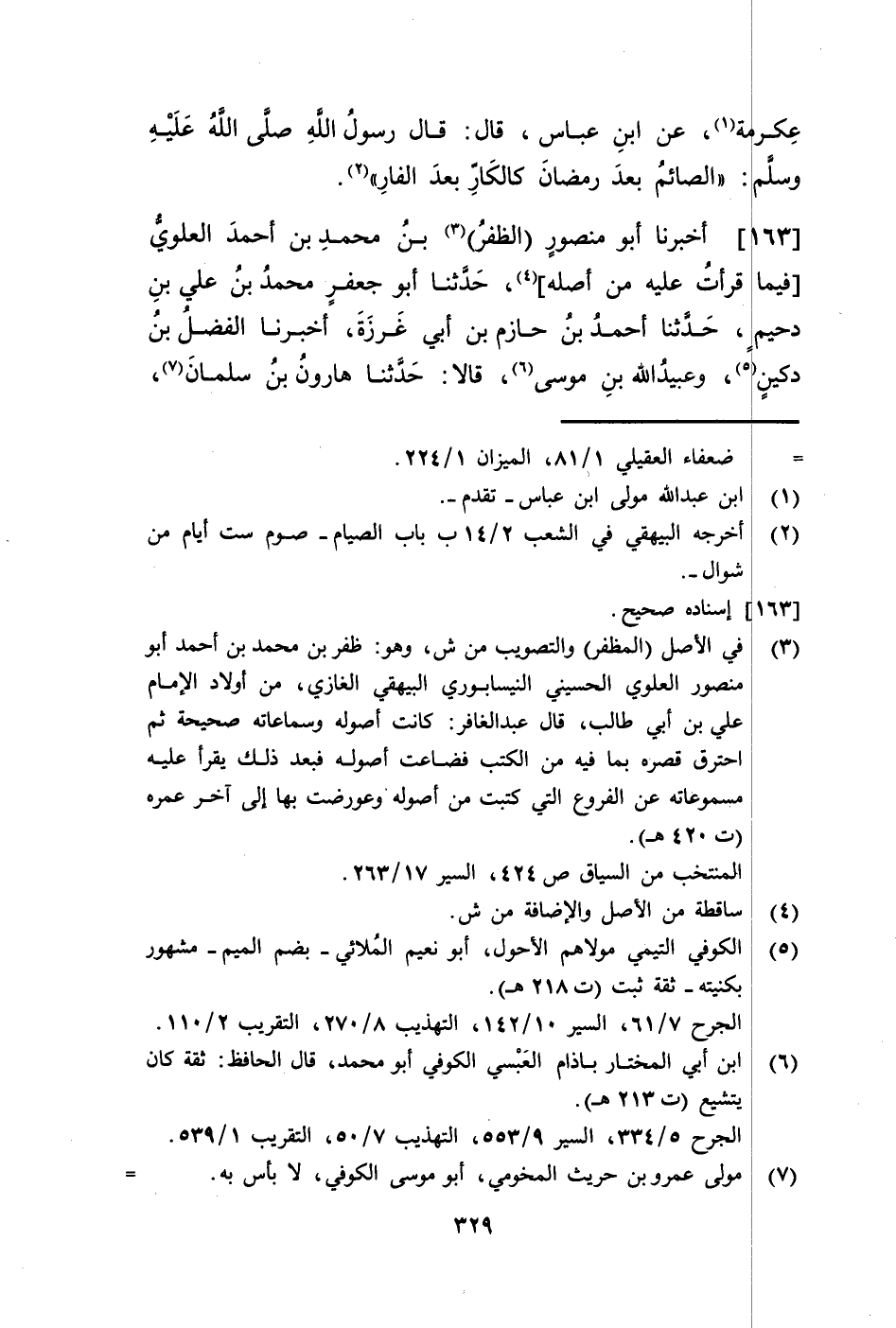 163 - أَخْبَرَنَا أَبُو مَنْصُورٍ الظَّفَرُ بْنُ مُحَمَّدِ بْنِ أَحْمَدَ الْعَلَوِيُّ، فِيمَا قَرَأْتُ عَلَيْهِ مِنْ أَصْلِهِ، حَدَّثَنَا أَبُو جَعْفَرٍ مُحَمَّدُ بْنُ عَلِيِّ بْنِ دُحَيْمٍ، حَدَّثَنَا أَحْمَدُ بْنُ حَازِمِ بْنِ أَبِي غَرَزَةَ، أَخْبَرَنَا الْفَضْلُ بْنُ دُكَيْنٍ، وَعُبَيْدُ اللَّهِ بْنُ مُوسَى قَالَا: حَدَّثَنَا هَارُونُ بْنُ سَلْمَانَ -[330]-، حَدَّثَنِي مُسْلِمُ بْنُ عُبَيْدِ اللَّهِ الْقُرَشِيُّ، أَنَّ أَبَاهُ أَخْبَرَهُ أَنَّهُ سَأَلَ النَّبِيَّ صَلَّى اللهُ عَلَيْهِ وَسَلَّمَ أَوْ سُئِلَ النَّبِيُّ صَلَّى اللهُ عَلَيْهِ وَسَلَّمَ عَنِ الصَّوْمِ، فَقَالَ: يَا رَسُولَ اللَّهِ أَصُومُ الدَّهْرَ كُلَّهُ؟ فَسَكَتَ عَنْهُ، ثُمَّ سَأَلَهُ الثَّانِيَةَ فَسَكَتَ، ثُمَّ سَأَلَهُ الثَّالِثَةَ، فَقَالَ: يَا نَبِيَّ اللَّهِ أَصُومُ الدَّهْرَ كُلَّهُ؟ فَقَالَ النَّبِيُّ صَلَّى اللهُ عَلَيْهِ وَسَلَّمَ عِنْدَ ذَلِكَ: «مَنِ السَّائِلُ عَنِ الصَّوْمِ؟» فَقَالَ: أَنَا يَا نَبِيَّ اللَّهِ، فَقَالَ: «§إِنَّ لِأَهْلِكَ عَلَيْكَ حَقًّا صُمْ رَمَضَانَ وَالَّذِي يَلِيهِ، وَكُلَّ أَرْبِعَاءَ وَخَمِيسٍ، فَإِذَا أَنْتَ قَدْ صُمْتَ الدَّهْرَ» -[331]- قَالَ رَضِيَ اللَّهُ عَنْهُ: كَذَلِكَ قَالَ عَنْهُمْ مُسْلِمُ بْنُ عَبْدِ اللَّهِ، وَقِيلَ عَنْ عُبَيْدِ اللَّهِ بْنِ مُوسَى، عَنْ هَارُونَ، عَنْ عُبَيْدِ اللَّهِ بْنِ مُسْلِمٍ الْقُرَشِيِّ، عَنْ أَبِيهِ قَالَ الشَّيْخُ رَضِيَ اللَّهُ عَنْهُ: وَلِشَهْرِ شَوَّالٍ فَضِيلَةٌ أُخْرَى وَهُوَ أَنَّهُ مِنْ أَشْهُرِ الْحَجِّ الَّتِي قَالَ اللَّهُ عَزَّ وَجَلَّ: {الْحَجُّ أَشْهُرٌ مَعْلُومَاتٌ} [البقرة: 197]