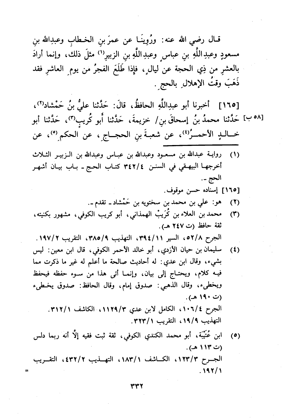 165 - أَخْبَرَنَا أَبُو عَبْدِ اللَّهِ الْحَافِظُ، قَالَ: حَدَّثَنَا عَلِيُّ بْنُ حَمْشَاذَ، حَدَّثَنَا مُحَمَّدُ بْنُ إِسْحَاقَ بْنِ خُزَيْمَةَ، حَدَّثَنَا أَبُو كُرَيْبٍ، حَدَّثَنَا أَبُو خَالِدٍ الْأَحْمَرُ، عَنْ شُعْبَةَ بْنِ الْحَجَّاجِ، عَنِ الْحَكَمِ، عَنْ مِقْسَمٍ، عَنِ ابْنِ عَبَّاسٍ، قَالَ: §لَا يُحْرَمُ بِالْحَجِّ إِلَّا فِي أَشْهُرِ الْحَجِّ، فَإِنَّ مِنْ سُنَّةِ الْحَجِّ أَنْ يُحْرَمَ بِالْحَجِّ فِي أَشْهُرِ الْحَجِّ