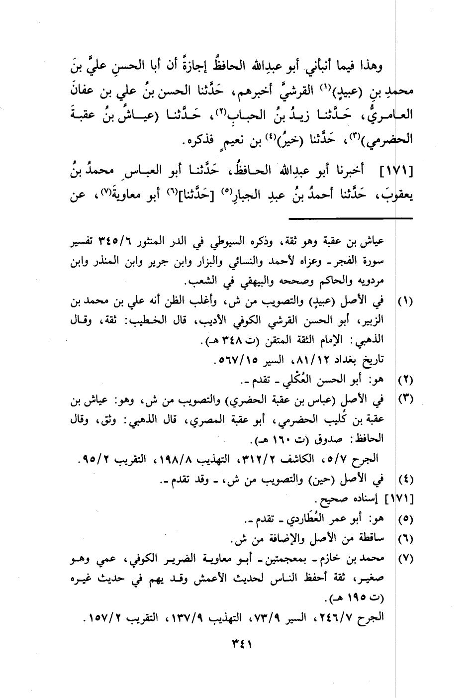 171 - أَخْبَرَنَا أَبُو عَبْدِ اللَّهِ الْحَافِظُ، حَدَّثَنَا أَبُو الْعَبَّاسِ مُحَمَّدُ بْنُ يَعْقُوبَ، حَدَّثَنَا أَحْمَدُ بْنُ عَبْدِ الْجَبَّارِ، حَدَّثَنَا أَبُو مُعَاوِيَةَ، عَنِ -[342]- الْأَعْمَشِ، عَنْ مُسْلِمٍ الْبَطِينِ، عَنْ سَعِيدِ بْنِ جُبَيْرٍ، عَنِ ابْنِ عَبَّاسٍ، قَالَ: قَالَ رَسُولُ اللَّهِ صَلَّى اللهُ عَلَيْهِ وَسَلَّمَ: §«مَا مِنْ أَيَّامٍ الْعَمَلُ الصَّالِحُ فِيهَا أَحَبُّ إِلَى اللَّهِ مِنْ هَذِهِ الْأَيَّامِ» يَعْنِي الْعَشْرَ، قَالُوا: يَا رَسُولَ اللَّهِ، وَلَا الْجِهَادُ فِي سَبِيلِ اللَّهِ، قَالَ: «وَلَا الْجِهَادُ فِي سَبِيلِ اللَّهِ» قَالَ: «إِلَّا رَجُلٌ خَرَجَ بِنَفْسِهِ وَمَالِهِ فَلَمْ يَرْجِعْ مِنْهَا بِشَيْءٍ»