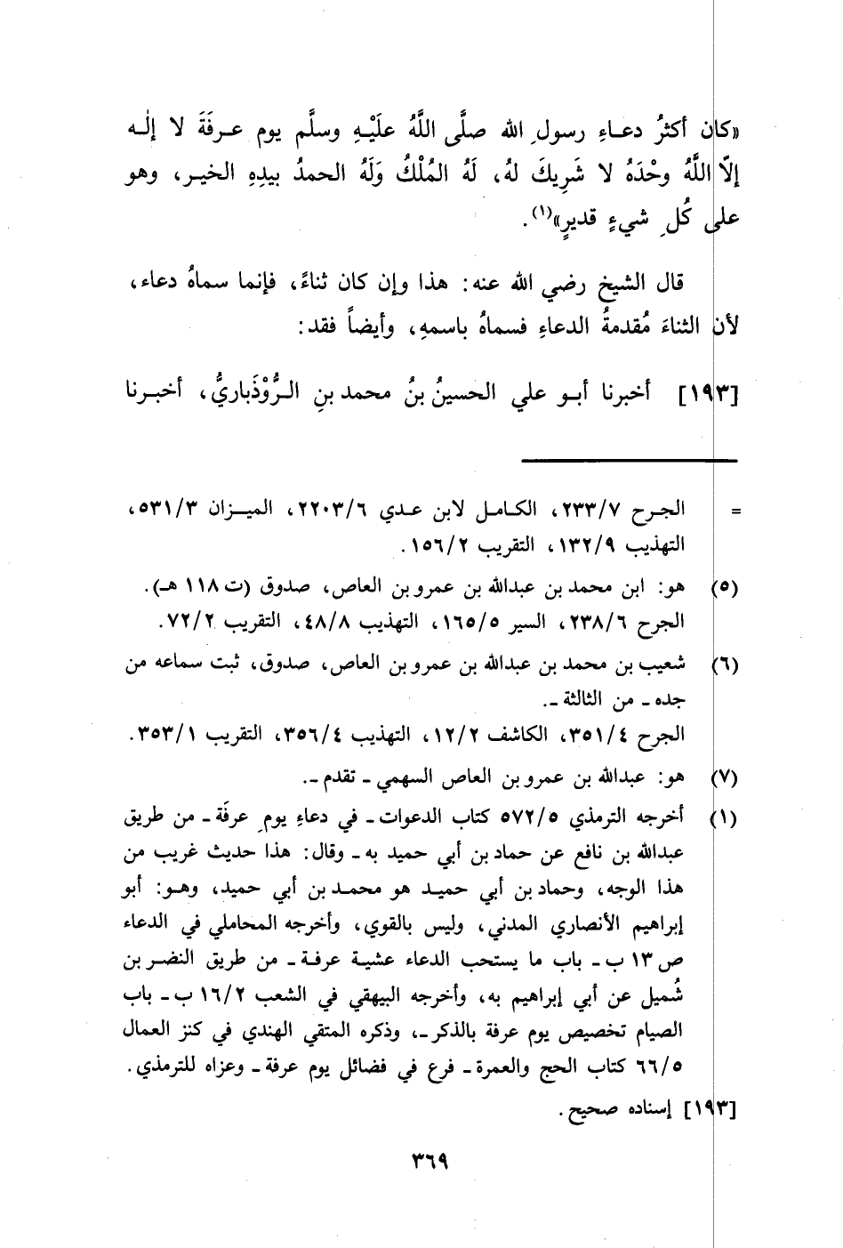 193 - أَخْبَرَنَا أَبُو عَلِيٍّ الْحُسَيْنُ بْنُ مُحَمَّدِ بْنِ الرُّوذْبَارِيِّ، أَنْبَأَنَا -[370]- الْحُسَيْنُ بْنُ الْحَسَنِ النَّسَوِيُّ، حَدَّثَنَا يَعْقُوبُ بْنُ سُفْيَانَ، حَدَّثَنَا الْحُسَيْنُ بْنُ الْحَسَنِ الْمَرْوَزِيُّ، وَكَانَ جَاوَرَ بِمَكَّةَ حَتَّى مَاتَ بِهَا، قَالَ: سَأَلْتُ سُفْيَانَ بْنَ عُيَيْنَةَ عَنْ تَفْسِيرِ قَوْلِ رَسُولِ اللَّهِ صَلَّى اللهُ عَلَيْهِ وَسَلَّمَ: §«أَكْثَرُ دُعَائِي وَدُعَاءِ الْأَنْبِيَاءِ قَبْلِي بِعَرَفَةَ لَا إِلَهَ إِلَّا اللَّهُ وَحْدَهُ لَا شَرِيكَ لَهُ، لَهُ الْمُلْكُ وَلَهُ الْحَمْدُ وَهُوَ عَلَى كُلِّ شَيْءٍ قَدِيرٌ» وَإِنَّمَا هِيَ ذِكْرٌ لَيْسَ فِيهِ دُعَاءٌ