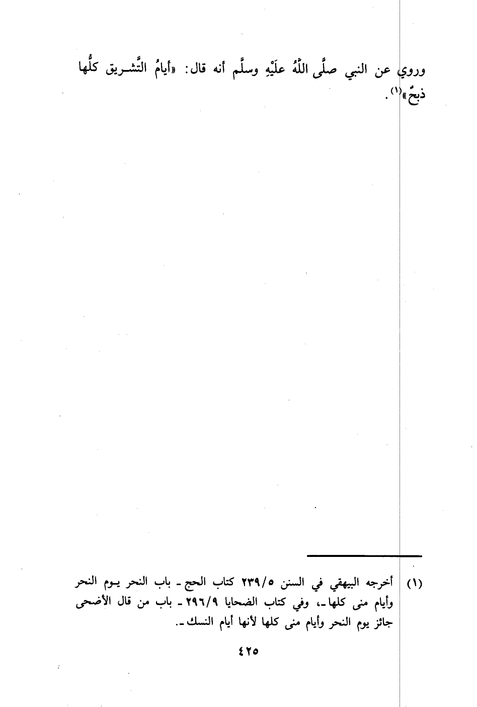 وَرُوِيَ عَنِ النَّبِيِّ صَلَّى اللهُ عَلَيْهِ وَسَلَّمَ أَنَّهُ قَالَ: §«أَيَّامُ التَّشْرِيقِ كُلُّهَا ذَبْحٌ»