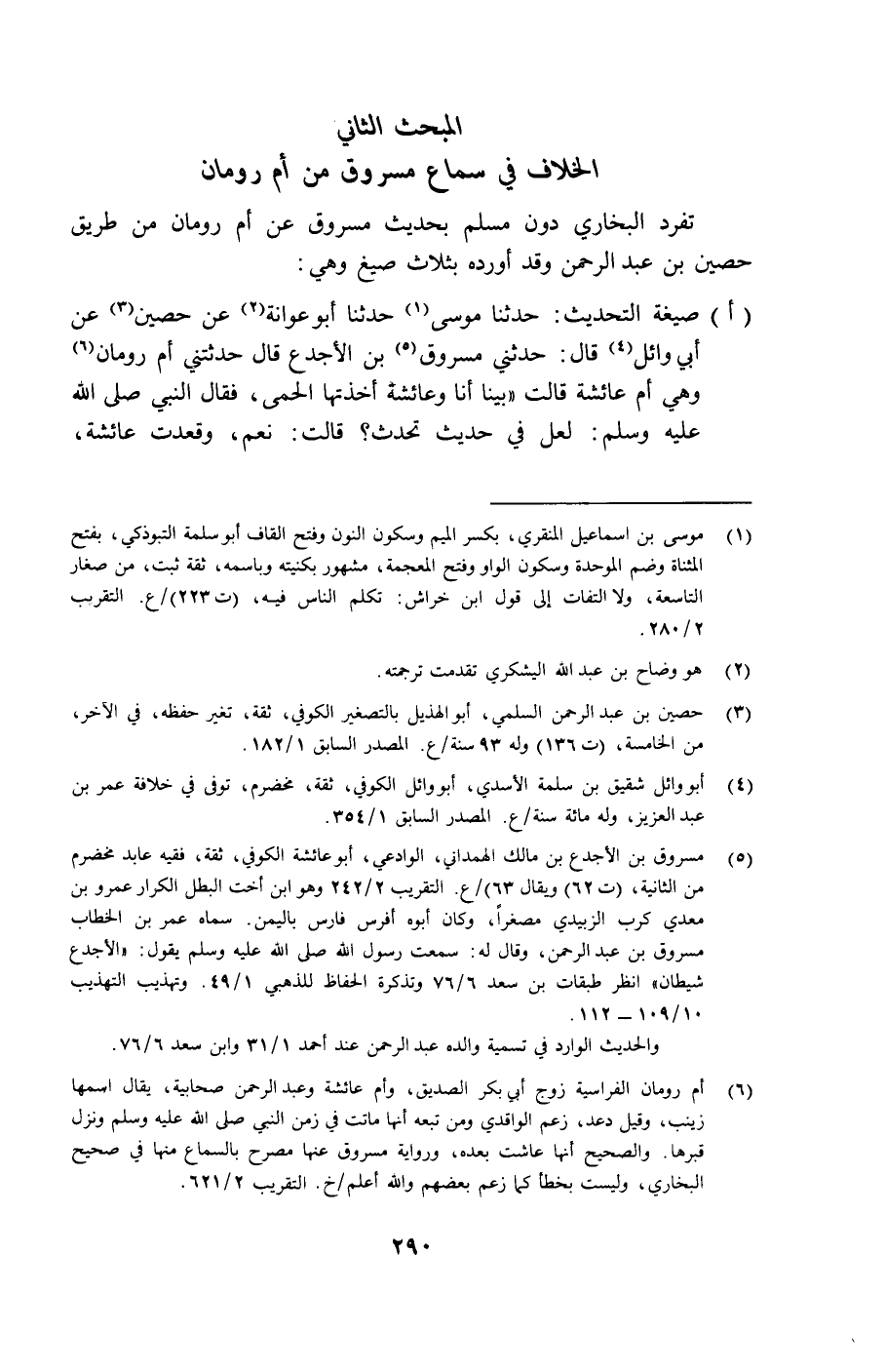 المبحث الثاني: الخلاف في سماع مسروق من أم رومان