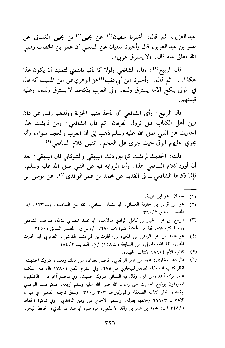 عبد العزيز، ثم قال: أخبرنا سفيان1 عن يحيى2 بن يحيى الغساني عن عمر بن عبد العزيز، قال: وأخبرنا سفيان عن الشعبي أن عمر بن الخطاب رضي الله تعالى عنه قال: "لا يسترق عربي".