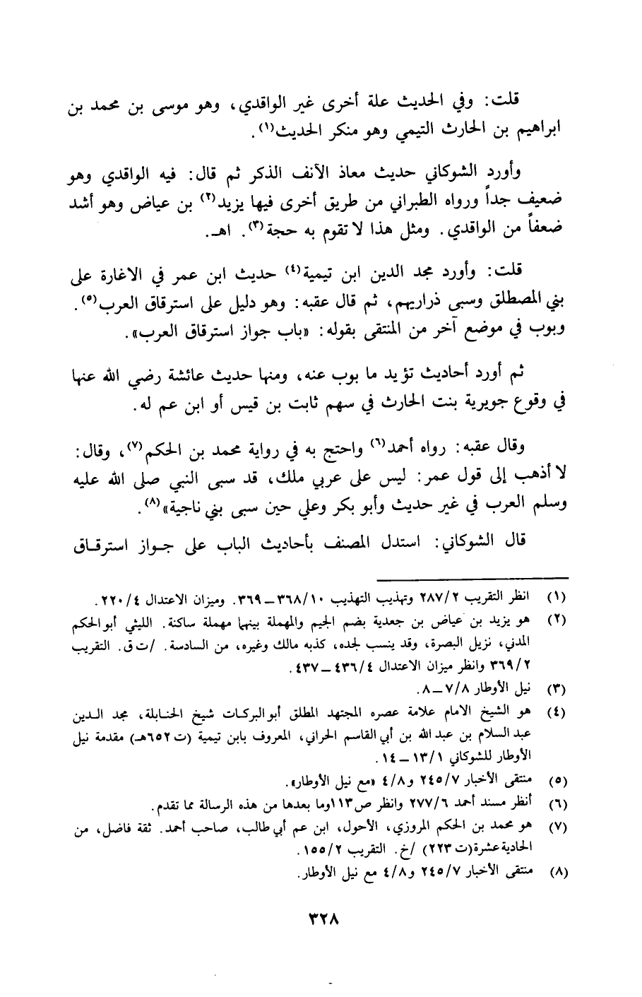 4 هو الشيخ الإمام علامة عصره المجتهد المطلق أبو البركات شيخ الحنابلة، مجد الدين عبد السلام بن عبد الله بن أبي القاسم الحراني، المعروف بابن تيمية (ت 652) مقدمة نيل الأوطار للشوكاني 1/13- 14.