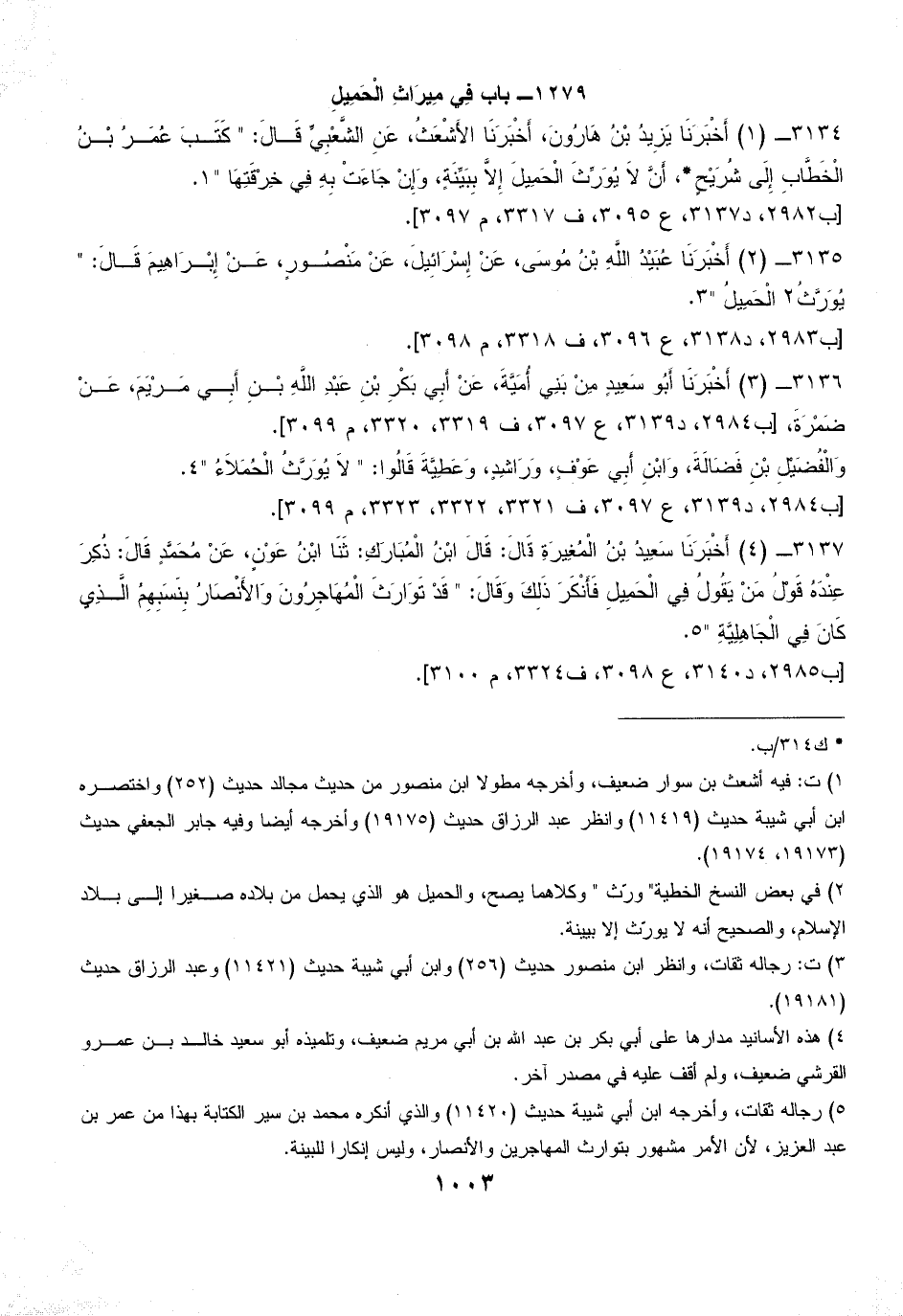 (¬5) رجاله ثقات، وأخرجه ابن أبي شيبة حديث (11420) والذي أنكره محمد بن سير الكتابة بهذا من عمر بن عبد العزيز، لأن الأمر مشهور بتوارث المهاجرين والأنصار، وليس إنكارا للبينة.
