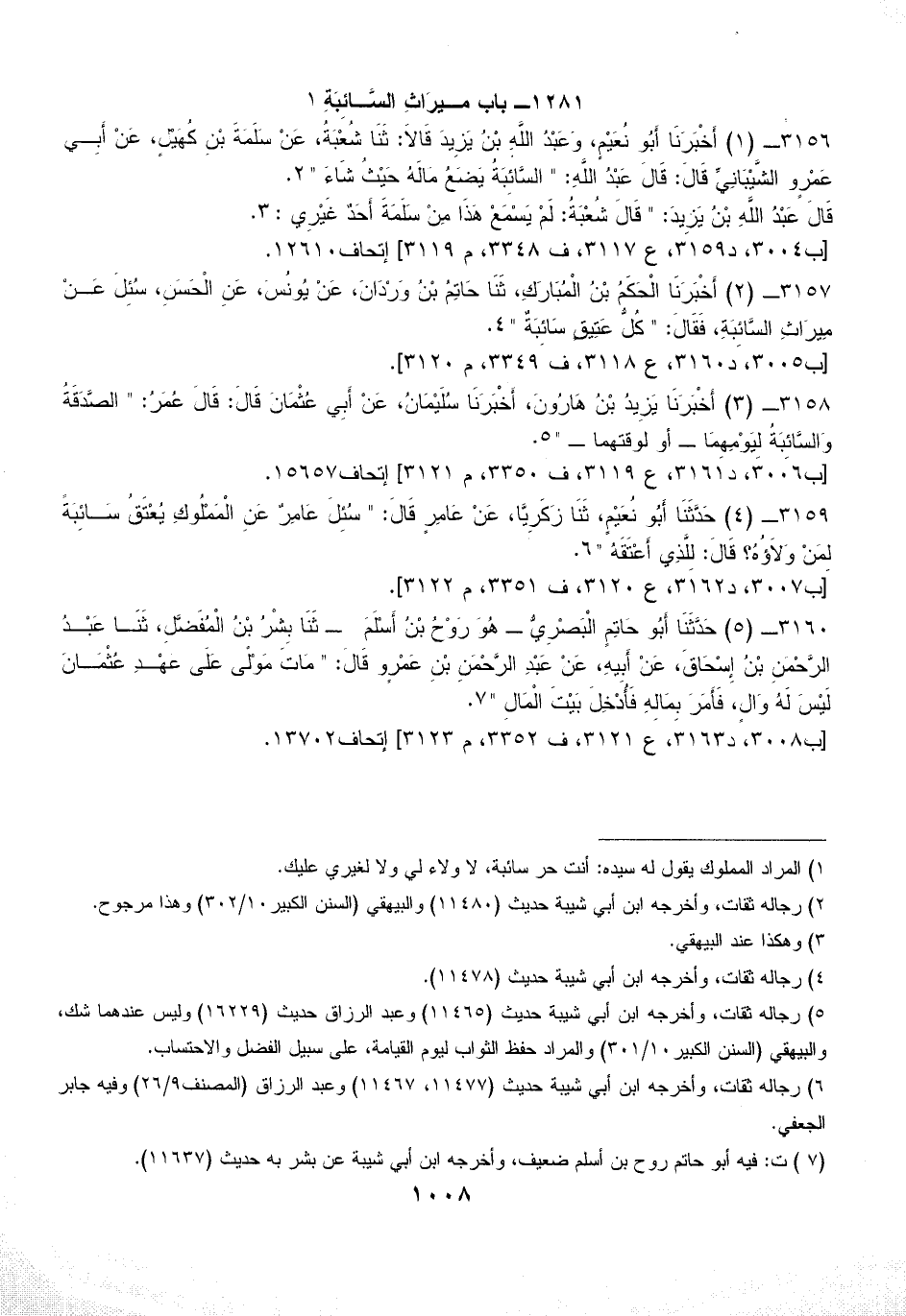 1281 - باب ميرَاثِ السَّائِبَةِ (¬1)
