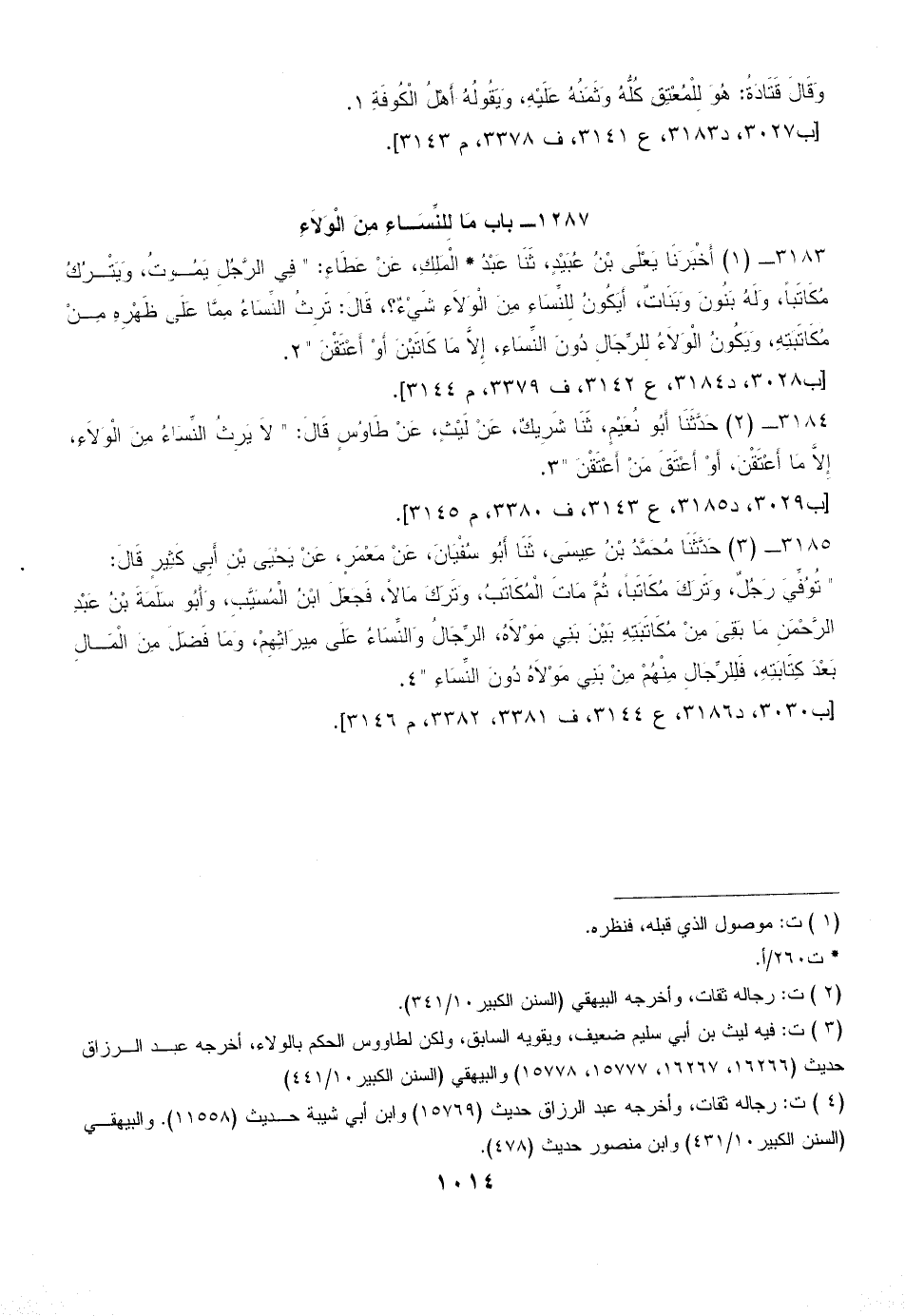 3184 - (2) حَدَّثَنَا أَبُو نُعَيْمٍ، ثَنَا شَرِيكٌ، عَنْ لَيْثٍ، عَنْ طَاوُسٍ قَالَ: " لاَ يَرِثُ النِّسَاءُ مِنَ الْوَلاَءِ، إِلاَّ مَا أَعْتَقْنَ، أَوْ أَعْتَقَ مَنْ أَعْتَقْنَ " (¬3).