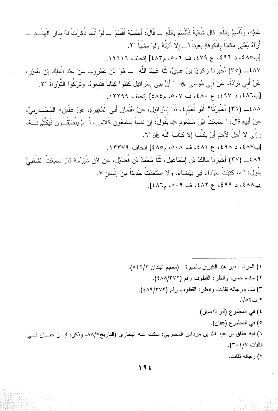 489 - (37) أَخْبَرَنَا مَالِكُ بْنُ إِسْمَاعِيلَ، ثَنَا مُحَمَّدُ بْنُ فُضَيْلٍ، عَنِ ابْنِ شُبْرُمَةَ قَالَ: سَمِعْتُ الشَّعْبِيَّ يَقُولُ: " مَا كَتَبْتُ سَوْدَاءَ فِي بَيْضَاءَ، وَلاَ اسْتَعَدْتُ حَدِيثاً مِنْ إِنْسَانٍ" (¬7).