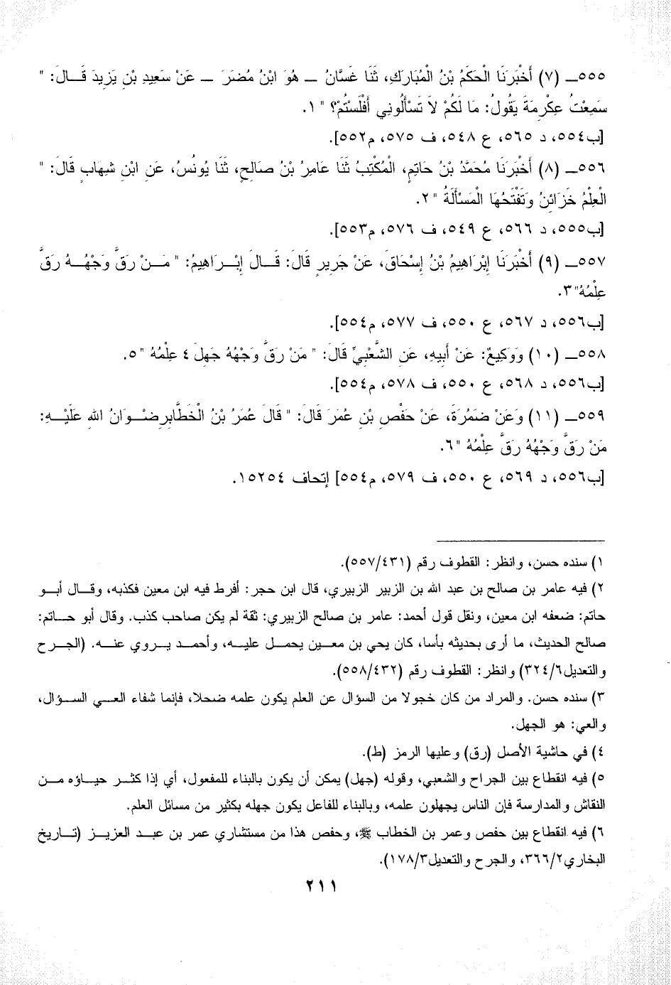 (¬6) فيه انقطاع بين حفص وعمر بن الخطاب - صلى الله عليه وسلم -، وحفص هذا من مستشاري عمر بن عبد العزيز (تاريخ البخاري 2/ 366، والجرح والتعديل 3/ 178).