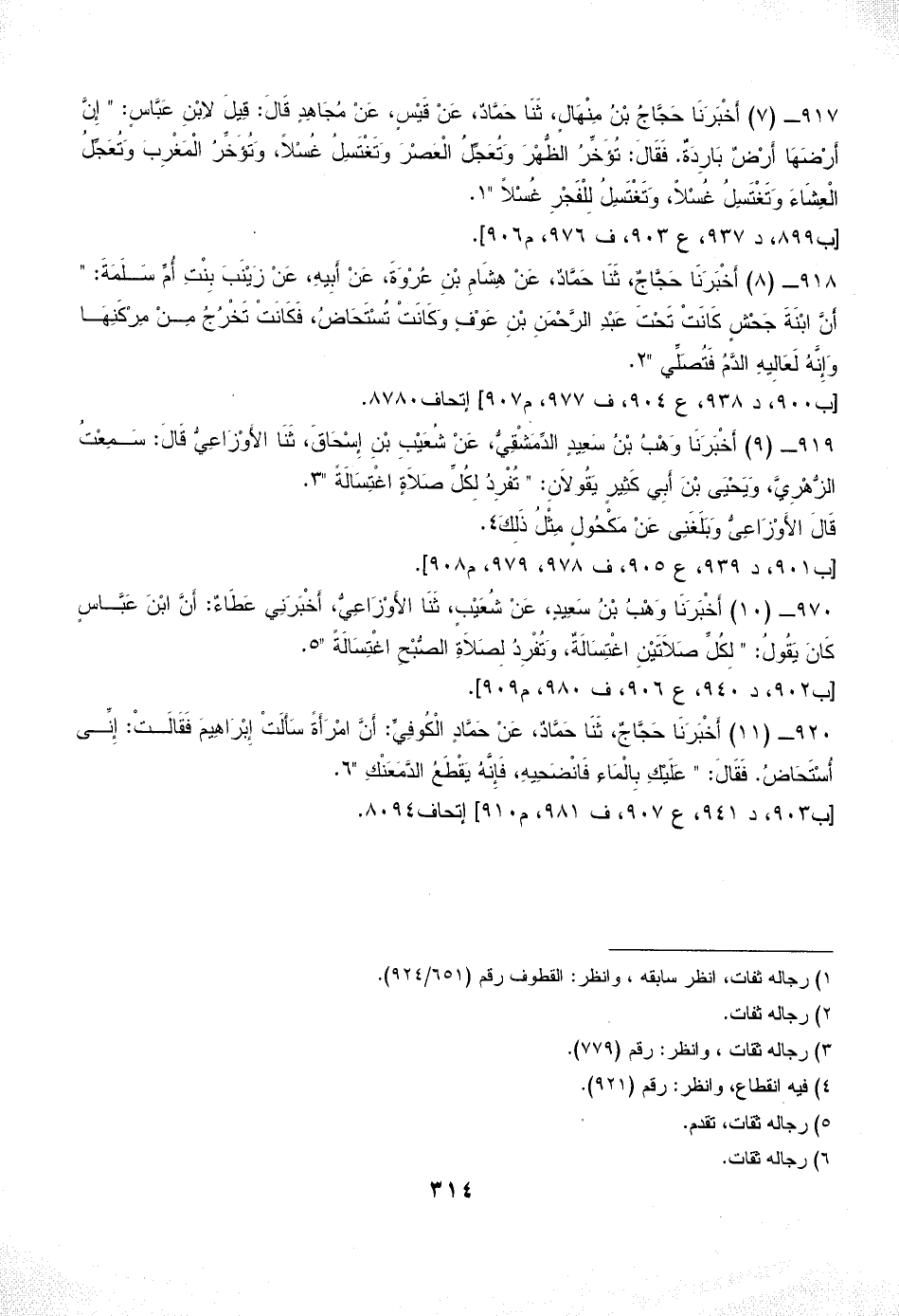 917 - (7) أَخْبَرَنَا حَجَّاجُ بْنُ مِنْهَالٍ، ثَنَا حَمَّادٌ، عَنْ قَيْسٍ، عَنْ مُجَاهِدٍ قَالَ: قِيلَ لاِبْنِ عَبَّاسٍ: " إِنَّ أَرْضَهَا أَرْضٌ بَارِدَةٌ. فَقَالَ: تُؤَخِّرُ الظُّهْرَ وَتُعَجِّلُ الْعَصْرَ وَتَغْتَسِلُ غُسْلاً، وَتُؤَخِّرُ الْمَغْرِبَ وَتُعَجِّلُ الْعِشَاءَ وَتَغْتَسِلُ غُسْلاً، وَتَغْتَسِلُ لِلْفَجْرِ غُسْلاً " (¬1).