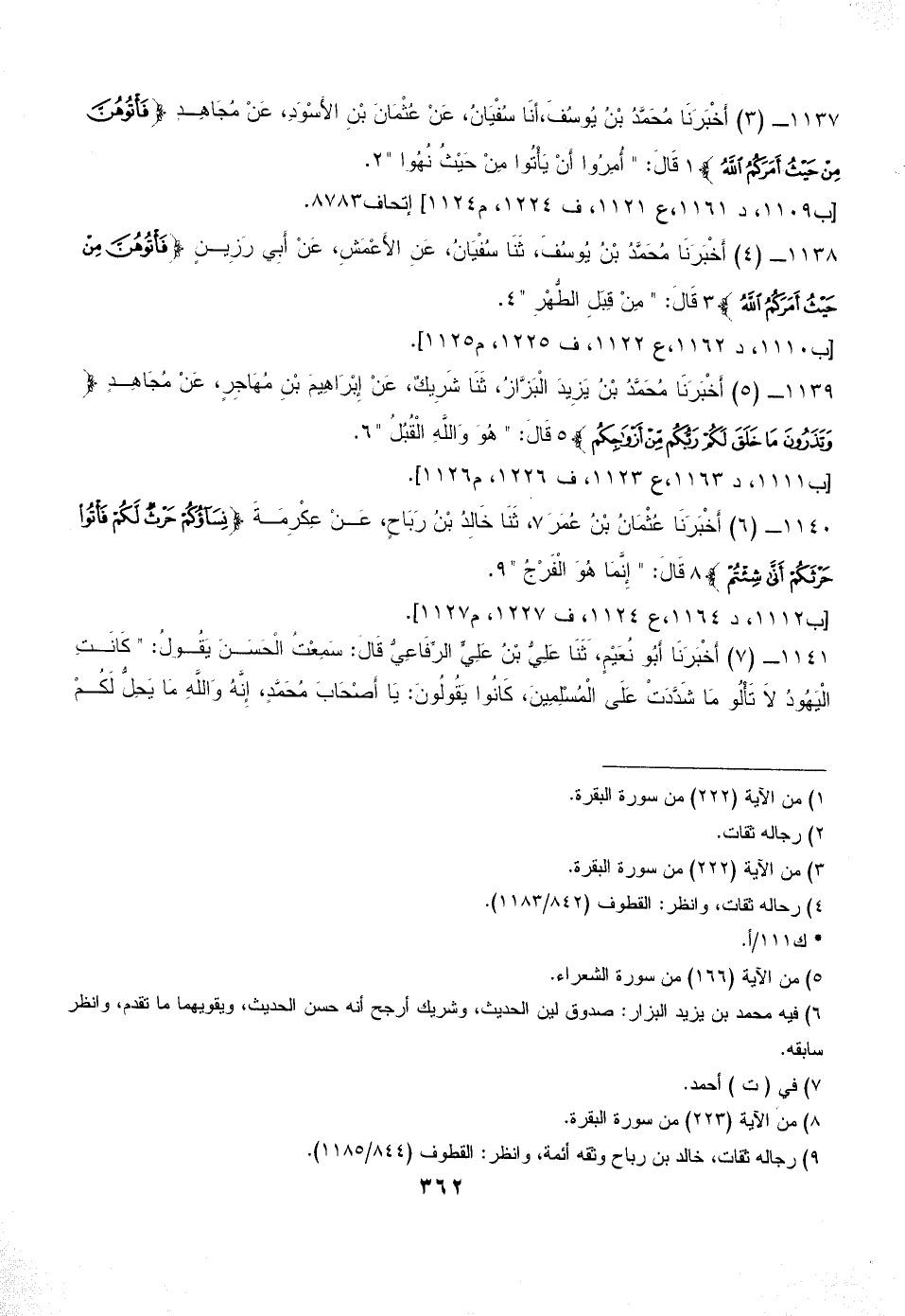 1137 - (3) أَخْبَرَنَا مُحَمَّدُ بْنُ يُوسُفَ، أنَا سُفْيَانُ، عَنْ عُثْمَانَ بْنِ الأَسْوَدِ، عَنْ مُجَاهِدٍ {فَأْتُوهُنَّ مِنْ حَيْثُ أَمَرَكُمُ اللَّهُ} (¬1) قَالَ: " أُمِرُوا أَنْ يَأْتُوا مِنْ حَيْثُ نُهُوا " (¬2).