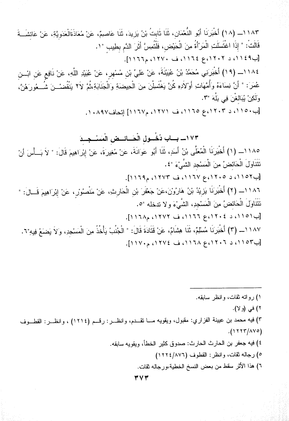 1186 - (2) أَخْبَرَنَا يَزِيْدُ بْنُ هَارُوْنَ، عَنْ جَعْفَرَ بْنِ الْحَارِثِ، عَنْ مَنْصُوْرٍ، عَنْ إِبْرَاهِيمَ قَالَ: " تَتَنَاوَلَ الْحَائِضُ مِنَ الْمَسْجِدِ، الشَّيْءَ ولا تدخله " (¬5).