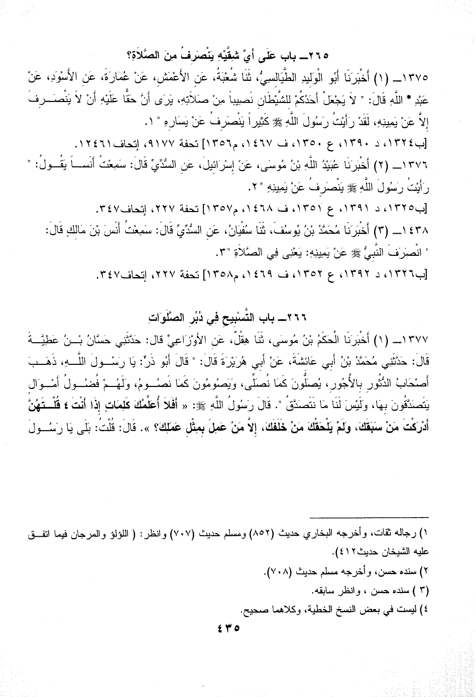 1376 - (2) أَخْبَرَنَا عُبَيْدُ اللَّهِ بْنُ مُوسَى، عَنْ إِسْرَائِيلَ، عَنِ السُّدِّيِّ قَالَ: سَمِعْتُ أَنَساً يَقُولُ: " رَأَيْتُ رَسُولَ اللَّهِ - صلى الله عليه وسلم - يَنْصَرِفُ عَنْ يَمِينِهِ " (¬2).