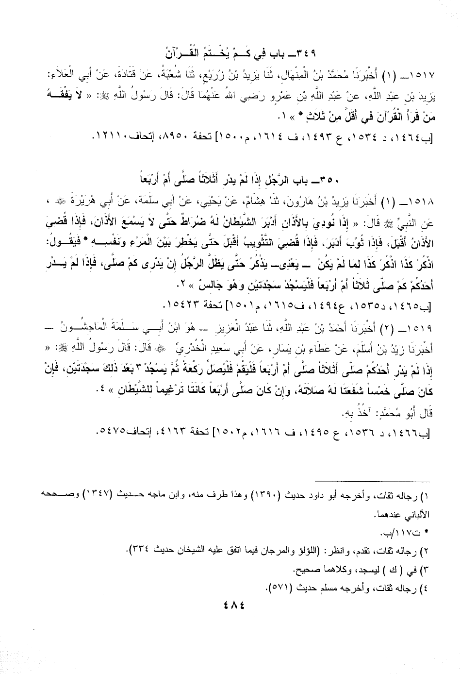 350 - باب الرَّجُلِ إِذَا لَمْ يَدْرِ أَثَلاَثاً صَلَّى أَمْ أَرْبَعاً