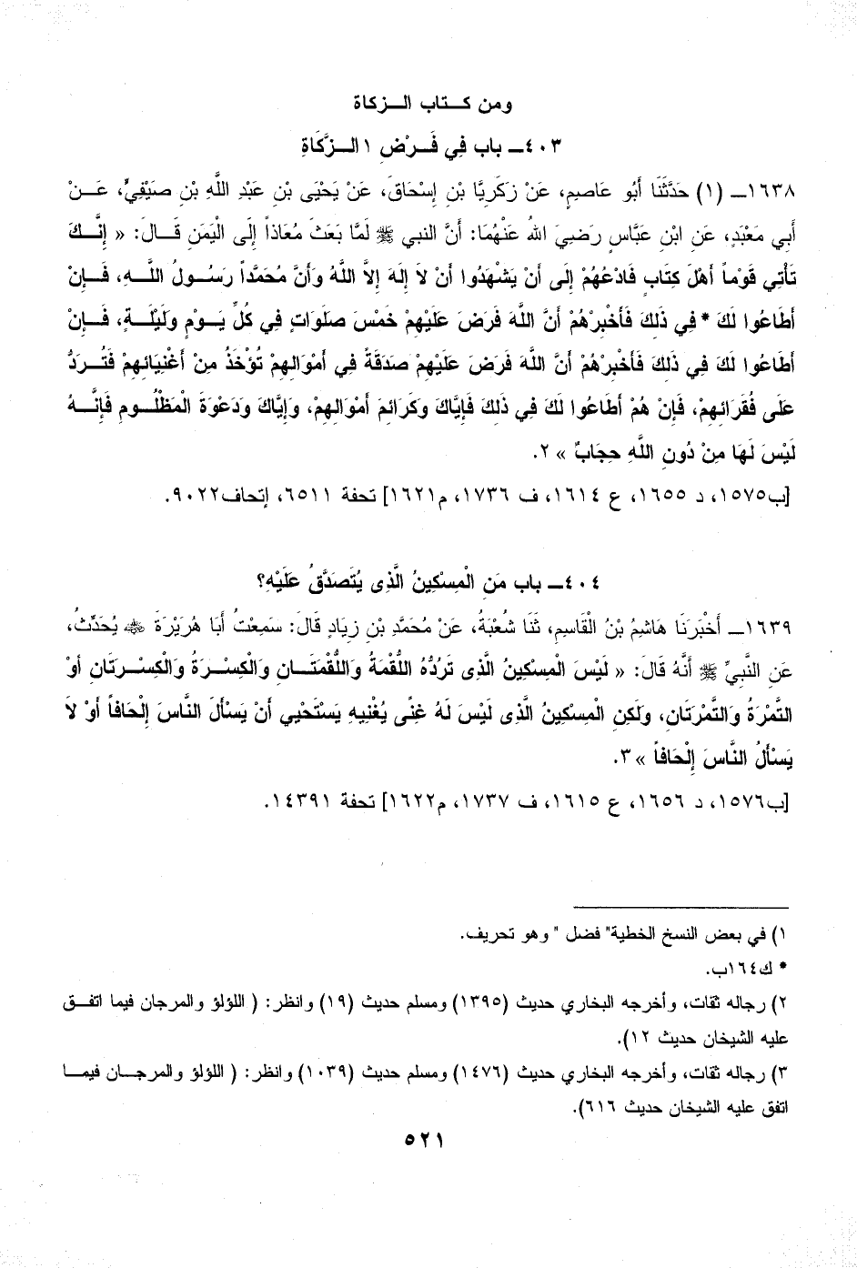 (¬3) رجاله ثقات، وأخرجه البخاري حديث (1476) ومسلم حديث (1039) وانظر: (اللؤلؤ والمرجان فيما اتفق عليه الشيخان حديث 616).
