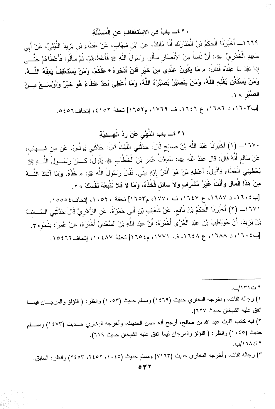 (¬2) فيه كاتب الليث عبد الله بن صالح، أرجح أنه حسن الحديث، وأخرجه البخاري حديث (1473) ومسلم حديث (1045) وانظر: (اللؤلؤ والمرجان فيما اتفق عليه الشيخان حديث 619).