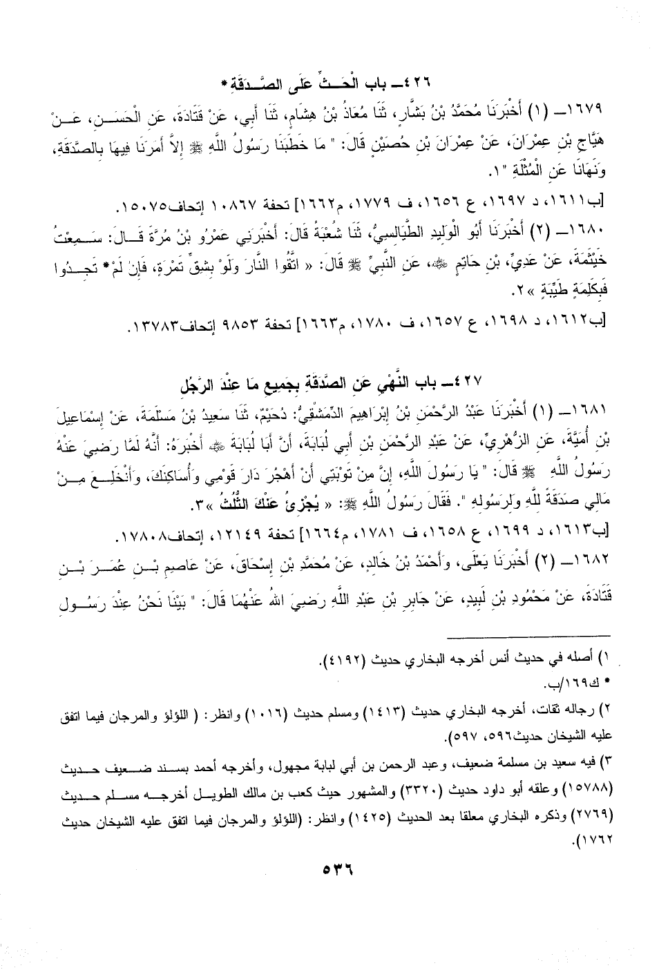 (¬2) رجاله ثقات، أخرجه البخاري حديث (1413) ومسلم حديث (1016) وانظر: (اللؤلؤ والمرجان فيما اتفق عليه الشيخان حديث 596، 597).