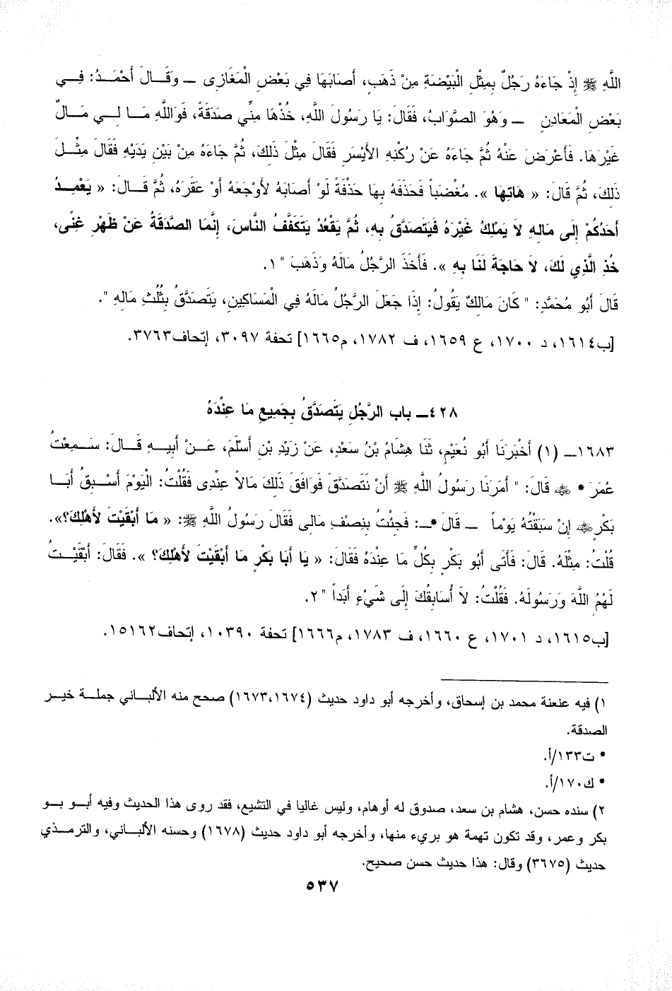 428 - باب الرَّجُلِ يَتَصَدَّقُ بِجَمِيعِ مَا عِنْدَهُ