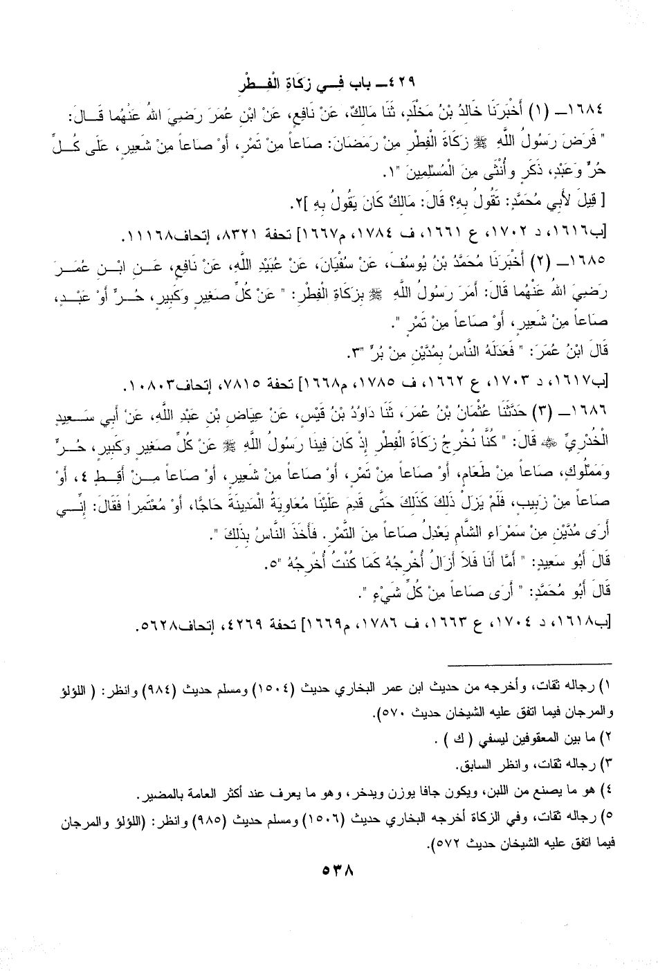 (¬5) رجاله ثقات، وفي الزكاة أخرجه البخاري حديث (1506) ومسلم حديث (985) وانظر: (اللؤلؤ والمرجان فيما اتفق عليه الشيخان حديث 572).