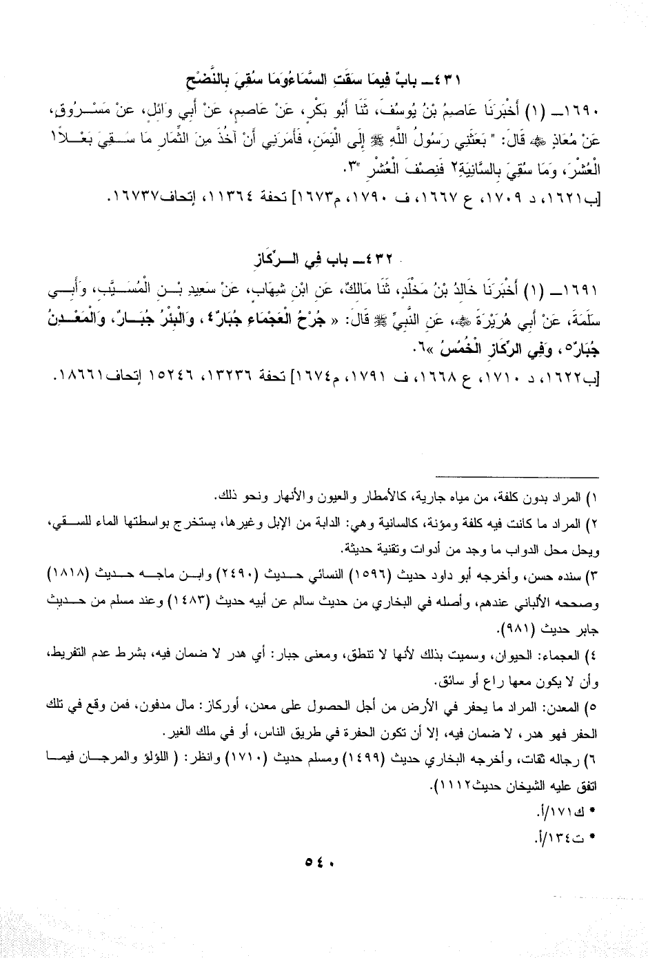 (¬5) المعدن: المراد ما يحفر في الأرض من أجل الحصول على معدن، أوركاز: مال مدفون، فمن وقع في تلك الحفر فهو هدر، لا ضمان فيه، إلا أن تكون الحفرة في طريق الناس، أو في ملك الغير.