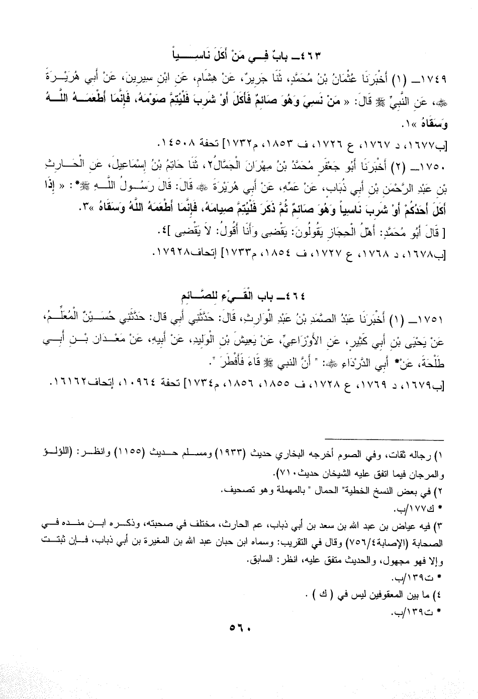 (¬3) فيه عياض بن عبد الله بن سعد بن أبي ذباب، عم الحارث، مختلف في صحبته، وذكره ابن منده في الصحابة (الإصابة 4/ 756) وقال في التقريب: وسماه ابن حبان عبد الله بن المغيرة بن أبي ذباب، فإن ثبتت وإلا فهو مجهول، والحديث متفق عليه، انظر: السابق.